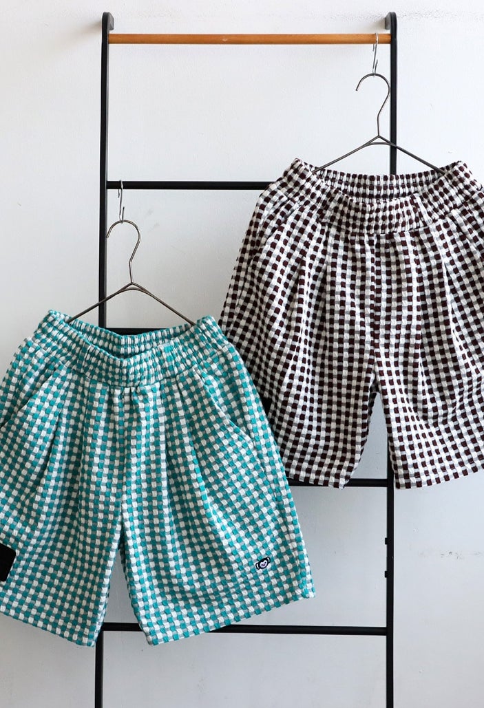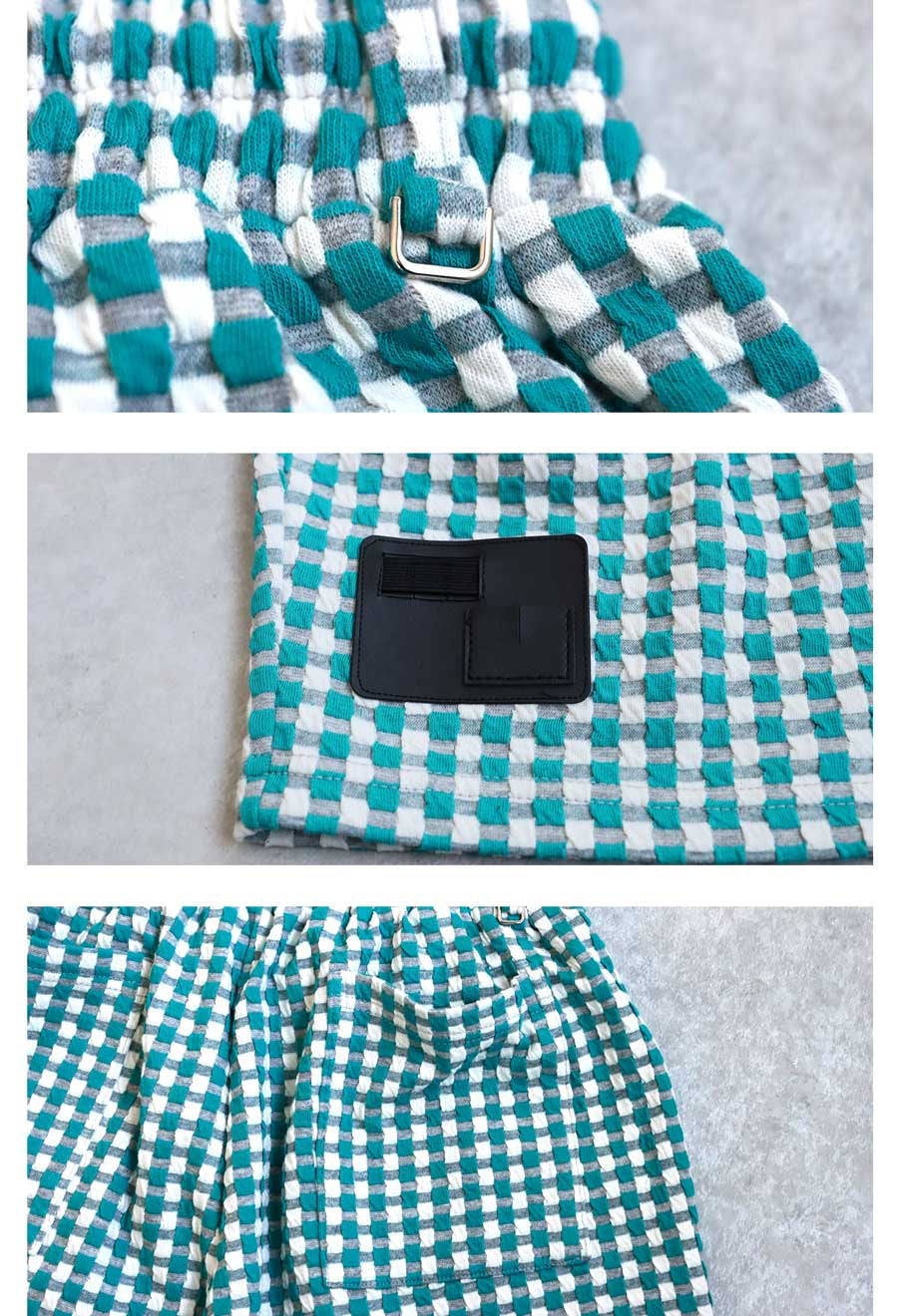 立体感のあるチェック柄生地が、シンプルなコーデに遊び心をプラス。