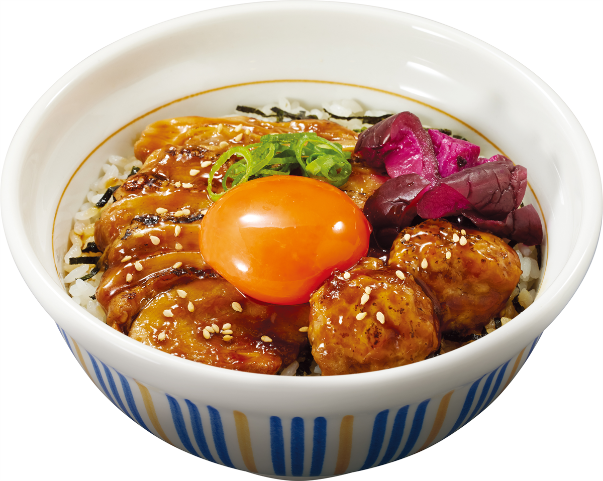 直火で焦げ目をつけた鶏むね肉と鶏団子の香ばしい風味、甘醤油だれの味わいは“こだわり卵”と相性抜群。程よい酸味のしば漬けを添えることで、最後の一口まで飽きることなくご堪能いただける一品に仕上げました。