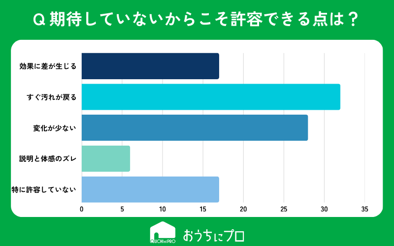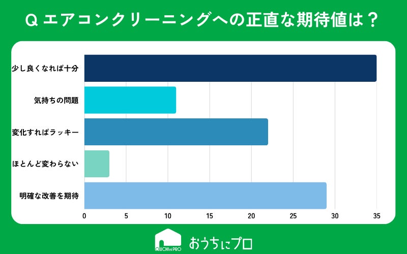 エアコンクリーニングへの期待値は「少し良くなれば十分」と考える人もいれば「明確な改善を期待している」人も多くいる。