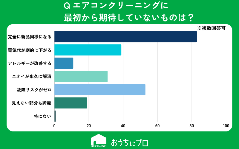 エアコンクリーニングにおいて、最初から期待していないものは何ですか?(複数回答可能)