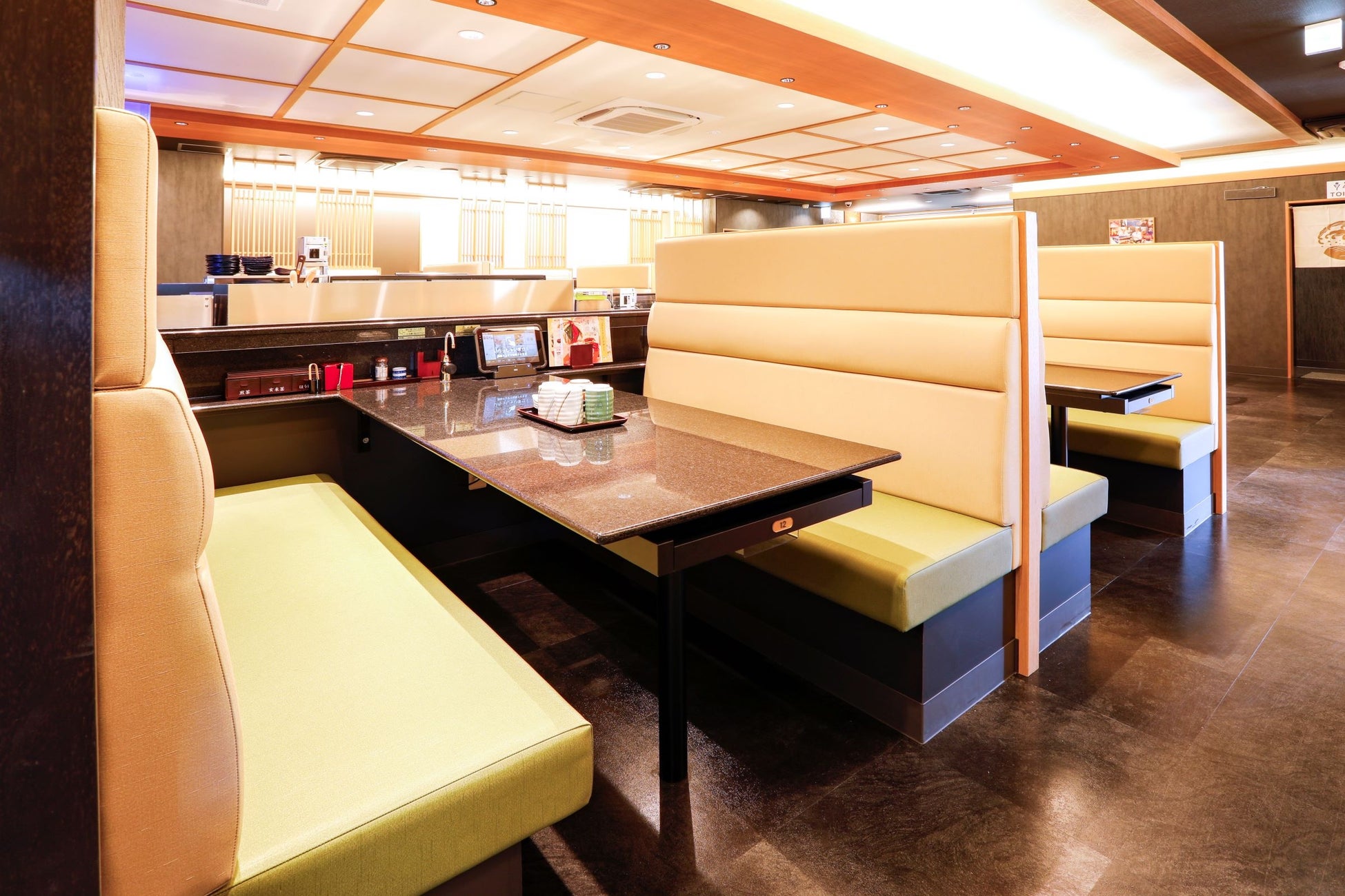 寿司レーンから離れた席も6名様掛けで、ご家族やご友人・お仕事関係の食事など様々なシーンでご利用いただけます。