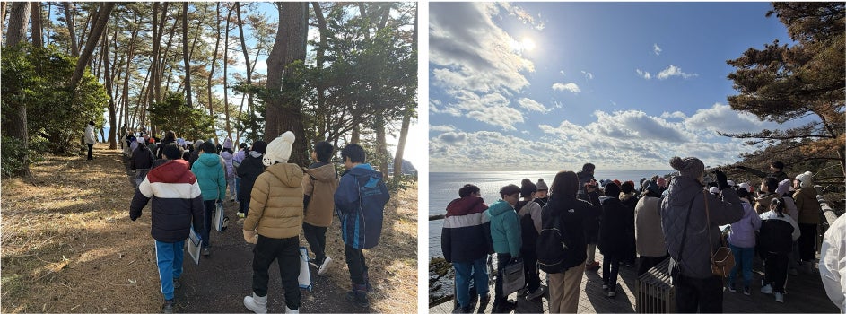 碁石海岸の地形や自然、海と人との関わりについて学びながら歩き、身近な海への理解を深めました。