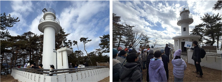 普段はなかなか見ることのできない灯台内部を見学し、設備についての説明を受けながら、灯台にまつわるクイズを交えて楽しく理解を深めました。児童たちからは積極的に質問も出され、灯台が果たしてきた重要な役割について学びを深める貴重な時間となりました。