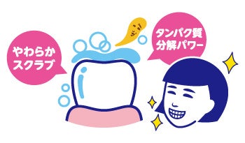 <タンパク質分解パワー>と<柔らかスクラブ効果>で黄ばみ*2を浮かせてスッキリ!