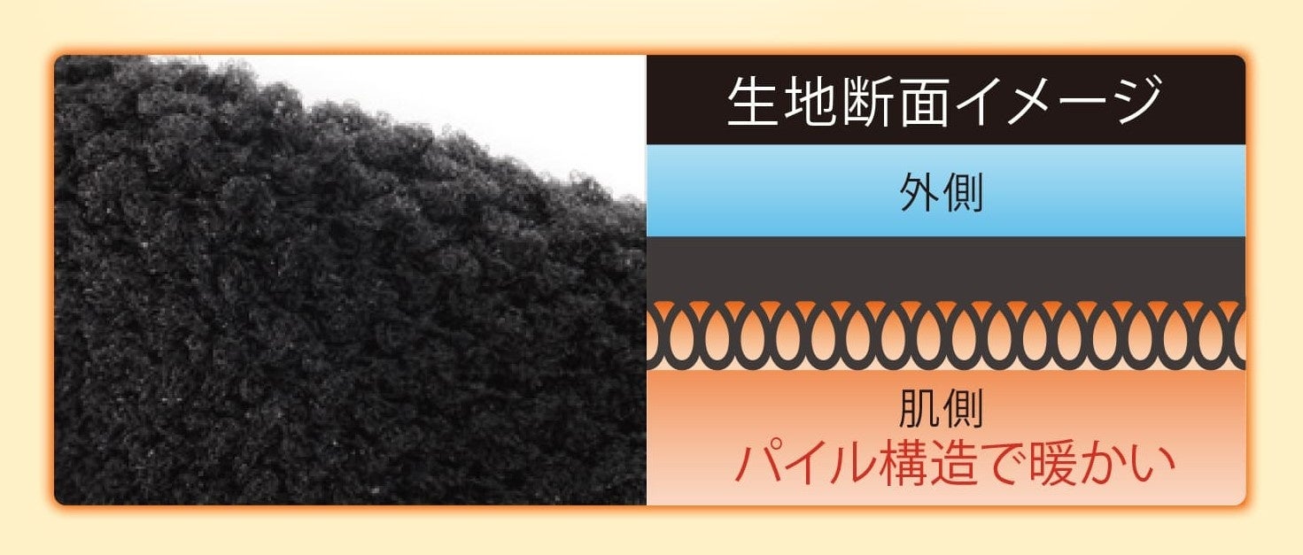特徴2.保温性に優れた内側パイル構造で暖かさをキープ