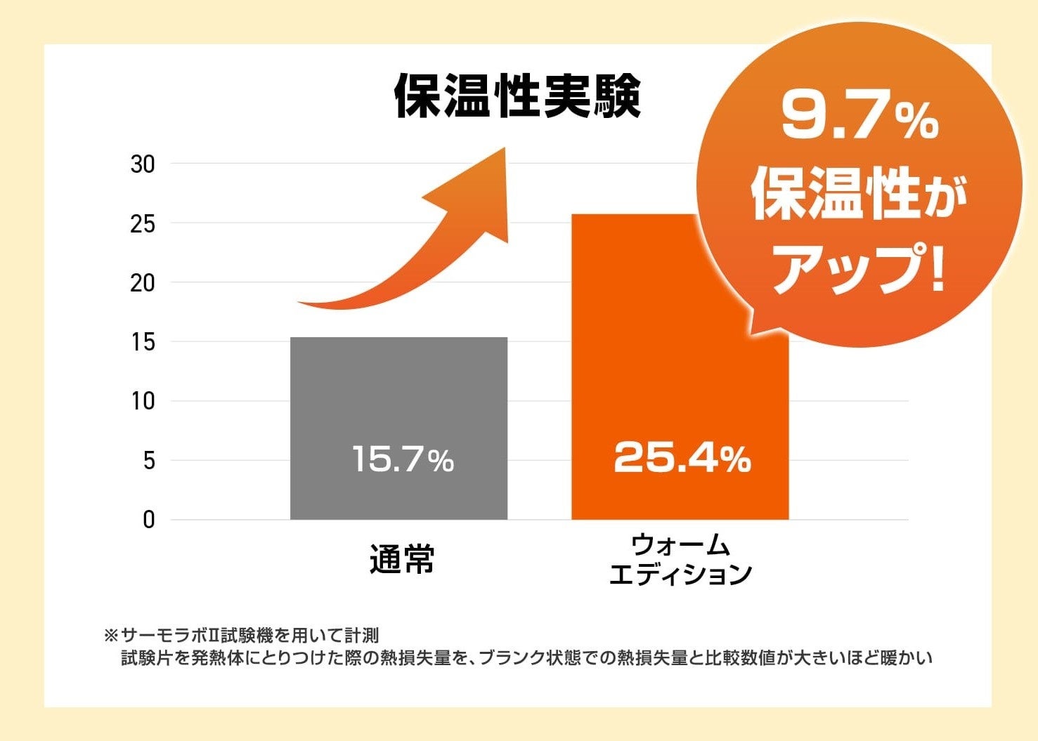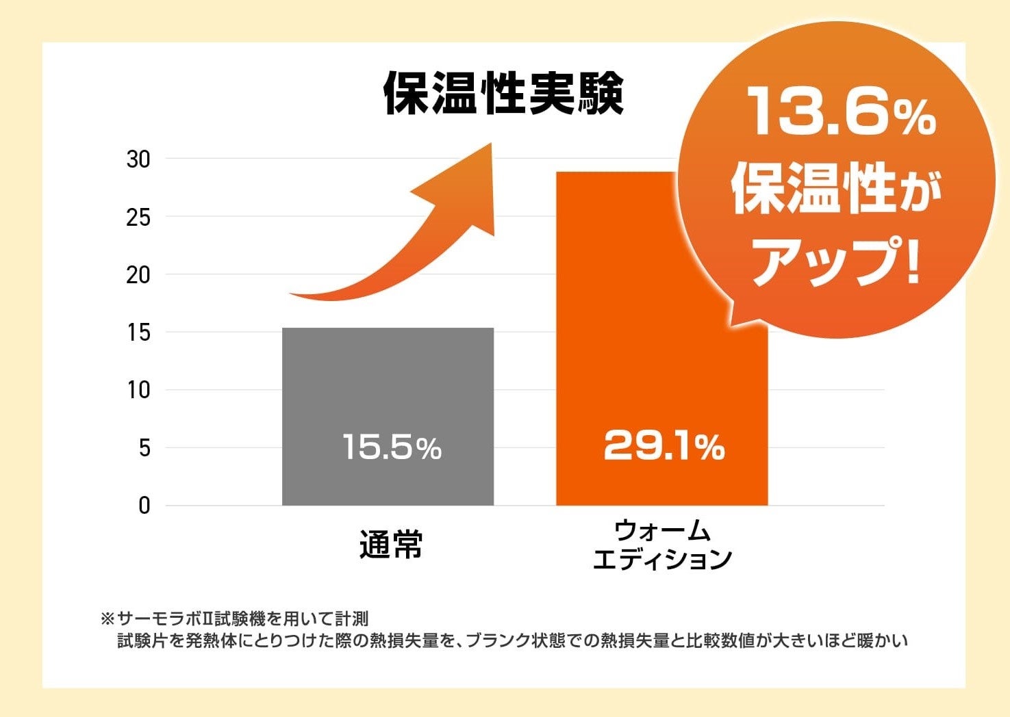 -当社既製品と比較し、アーム13.6%、カーフ9.7%保温率が向上-