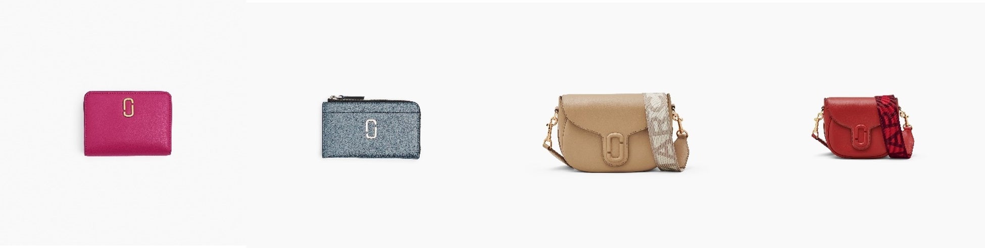 左から ザ レザー J マーク ミニ コンパクト ウォレット ¥23,100/ ザ ギャラクティック グリッター J マーク トップ ジップ マルチ ウォレット ¥19,800/