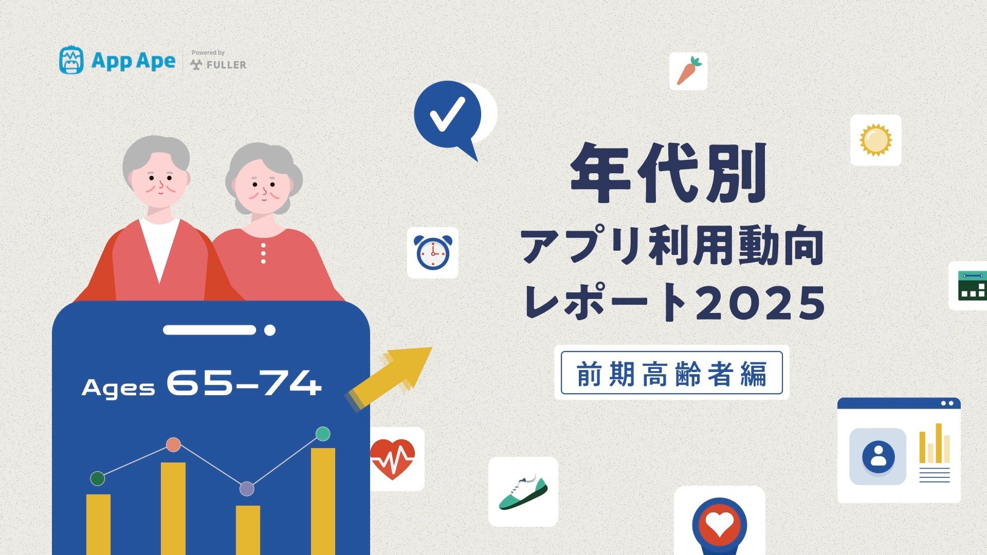 フラー株式会社(本社:新潟県新潟市、代表取締役社長:山﨑将司、以下「フラー」)は、アプリ市場分析サービス「App Ape(アップ・エイプ)」に蓄積するデータから、65〜74歳の前期高齢者のスマートフォン利用実態をまとめた「年代別アプリ利用動向レポート2025 前期高齢者編」を公開しました。
