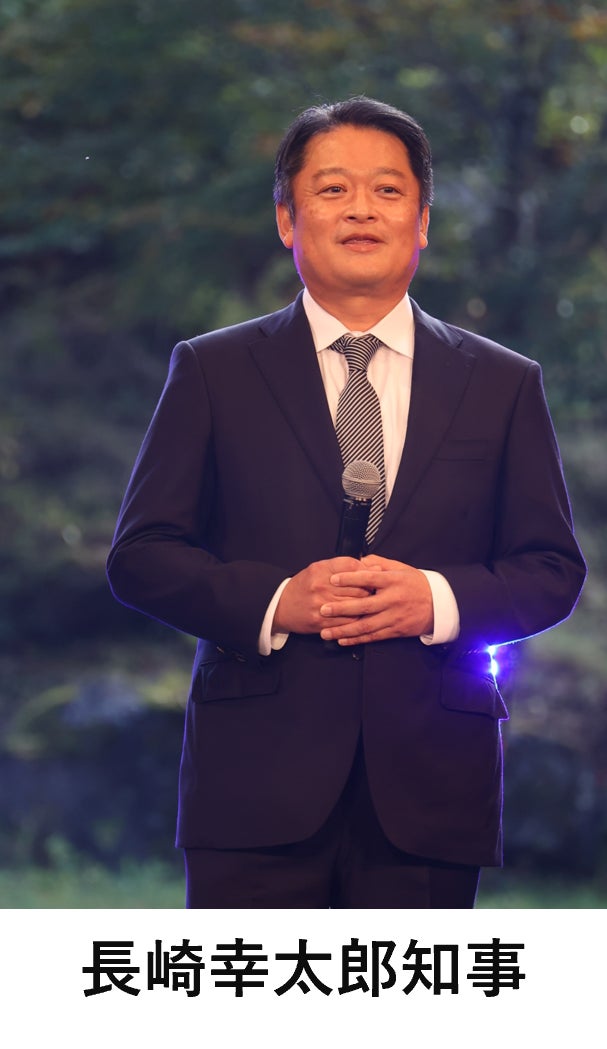 ■山梨県の長崎幸太郎知事は甲州印伝と市川大門手漉和紙で作られた工芸品を携えて登壇