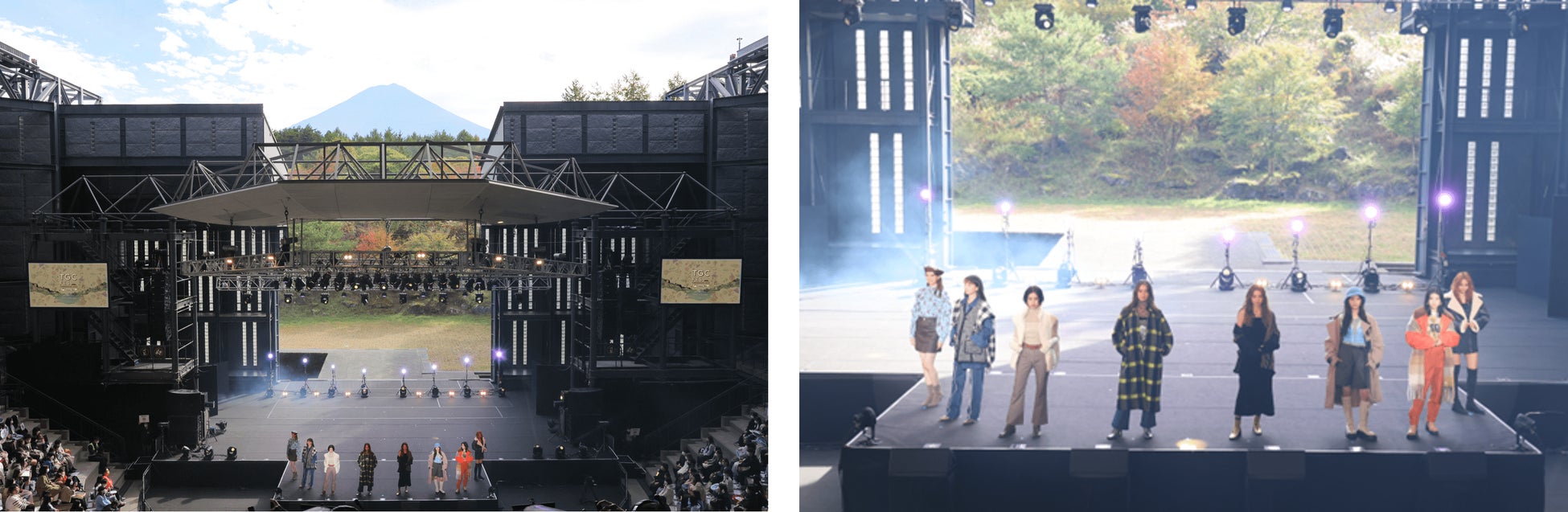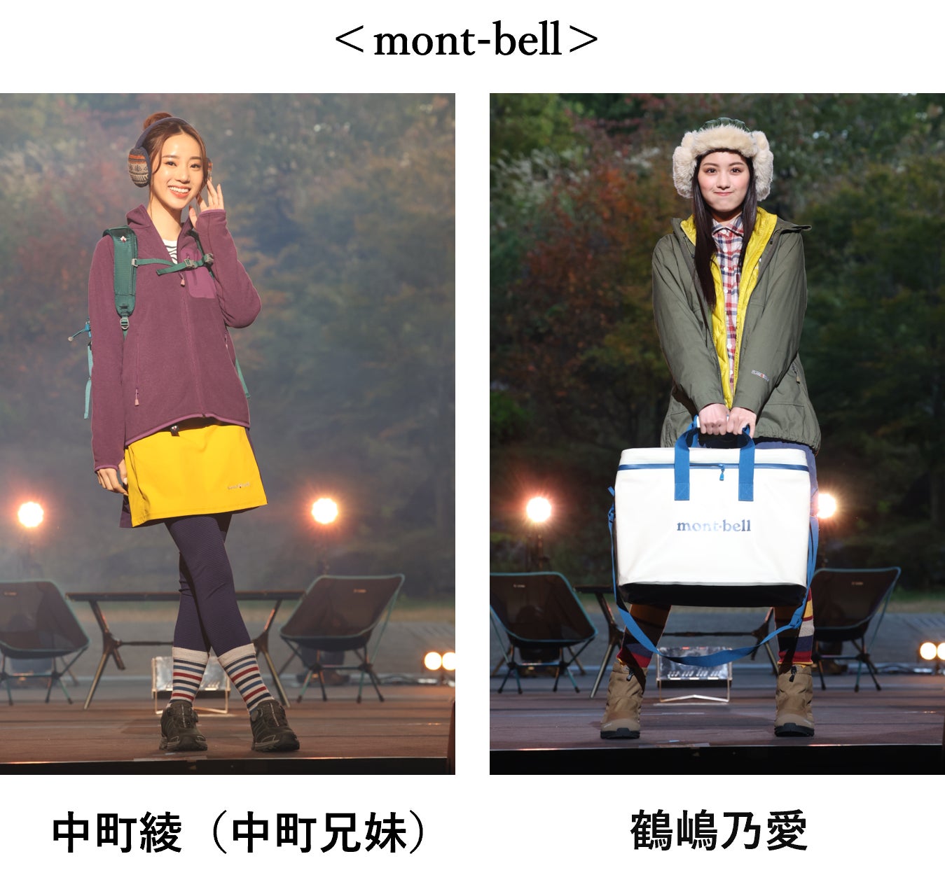 富士山のふもとの道の駅「富士吉田」内にストアをかまえるmont-bellは、シーン別のファッションショーを実施。中町綾と吉永毬乃は秋の日帰りハイキング、なごみが軽量モデルでスピードハイク、鶴嶋乃愛がキャンプで焚き火、トラウデン直美がキャンプでお料理、小泉のんがスノーアクティビティを堪能、原田都愛(Girls²)が秋の街歩き、香川沙耶が冬の旅をテーマに、それぞれのアクティビティシーンを楽しむためのスタイリングを提案しました。