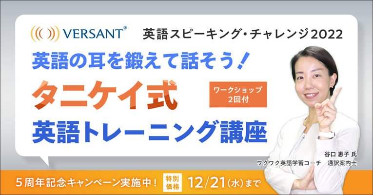 日本経済新聞社(本社:東京都千代田区、代表取締役社長:長谷部剛)は、世界標準の英語スピーキングテスト「VERSANT」を主に法人顧客の皆様に販売しています。「日本の英語を強くする」というキャッチフレーズを掲げ、英語スピーキング力のレベルアップにつながる様々なキャンペーンを実施しています。毎年秋には、個人の学習者の皆様にVERSANTスピーキングテストを特別価格で受験できる「VERSANT英語スピーキング・チャレンジ」を開催しています。今年は「VERSANT英語スピーキング・チャレンジ」開催5周年を記念して特別講座を開講しました。
