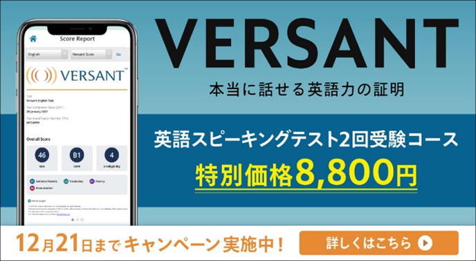 本キャンペーンでご好評をいただいている、VERSANTを2回、特別価格で受験できる「スピーキング力を測る! テストコース」もお申し込みいただけます。