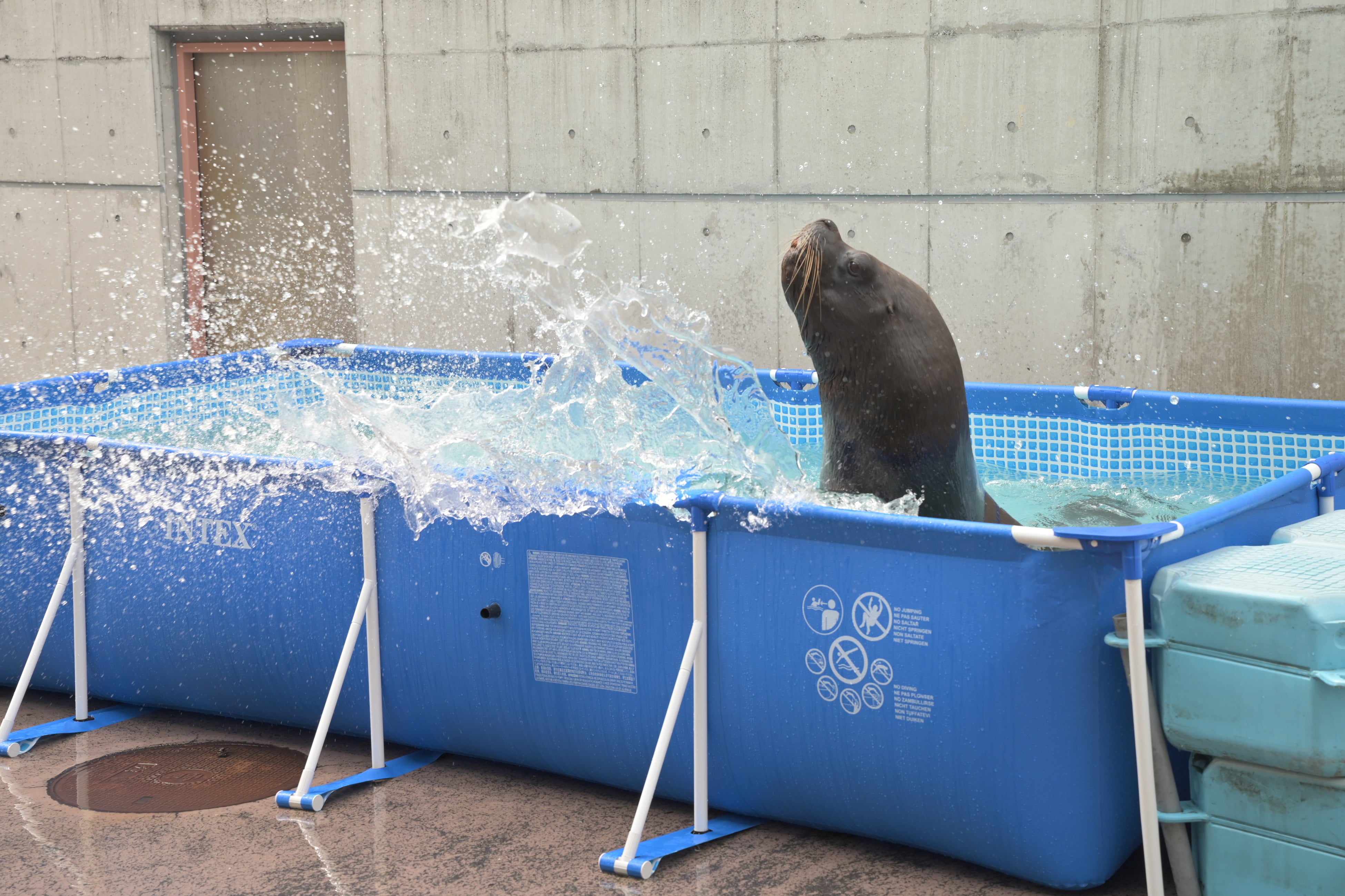 イルカたちは日頃からジャンプをしており、「海の動物たちのショー」では自然界でも見ることのできる動作や行動を活かしたパフォーマンスを運動の一環として行っております。夏の暑さを吹き飛ばすスプラッシュ演出をお楽しみください。