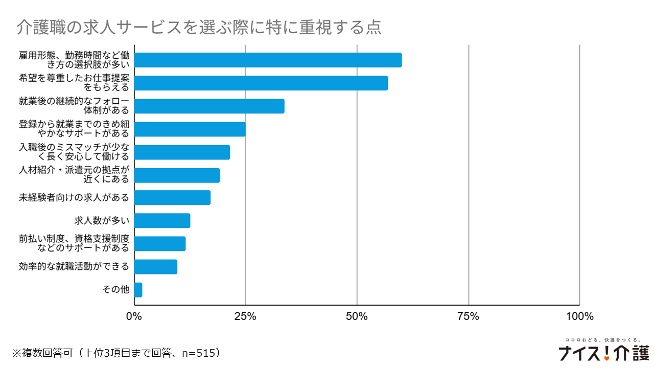 介護職の仕事探し、「働き方の選択肢の多さ」が最重要に ~求職者の60.2%が重視、約6割が複数サービスで仕事探し~