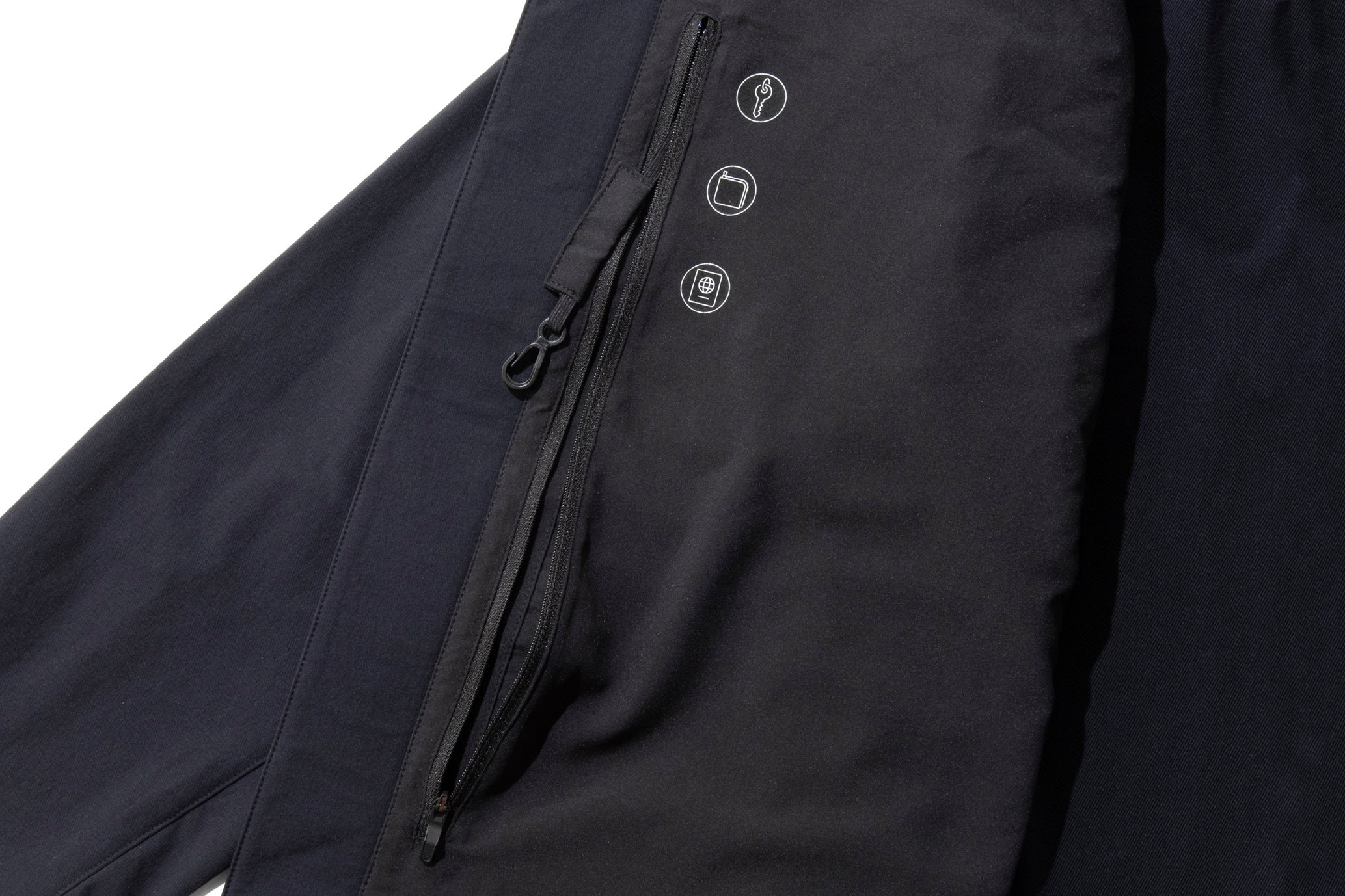 コート、フーディ、ジャケットには、イヤホン/スマートフォン/鍵/財布/パスポート/モバイルパッドなど、収納できるアイテムのアイコンが付いた多機能ポケットを備え、バッグを持たずとも自由に動ける収納力を確保しました。