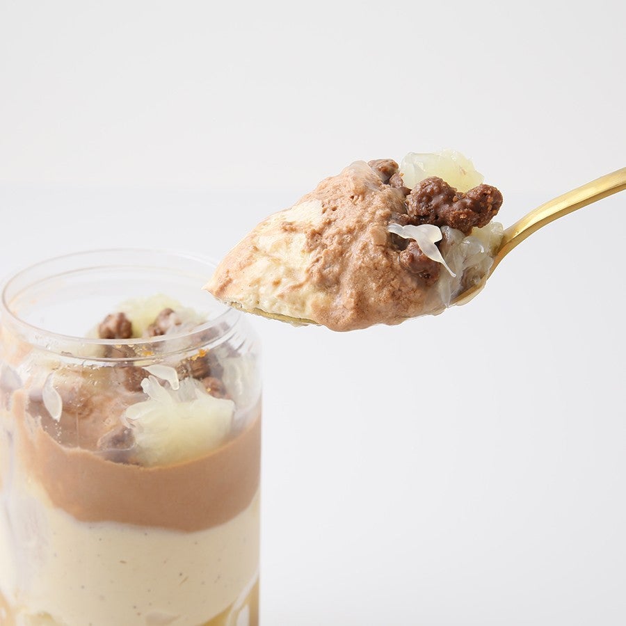和栗のクリームや選び抜かれた洋梨、和紅茶のムースを缶に詰め込んだデザート。和と洋が融合した逸品で、新感覚の味わいを表現しています。紅茶ムース、マロンクリーム、ジュレオラム、洋梨コンポートの層でできており、上から一つ一つの層を味わったり、4つの層を混ぜて新たな食感を楽しんだりできる商品です。