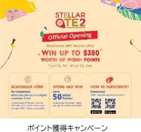 ポイント獲得アプリ「Wink +」を活用し、「STELLAR@TE2」の対象店舗で$10以上のお買い物でポイントをプレゼントするキャンペーンを実施します。さらに同施設内にいくつか設置されているQRコードを読み取ることでポイントが獲得できるキャンペーンを実施します。