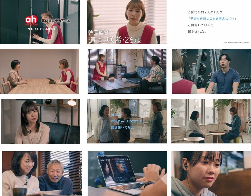 今回の動画制作は、当社で働く20代の社員がまだ自分が「子どもを持つこと」を考えられずどこか他人ごとにとらえてしまっているという声から始まりました。少子化が叫ばれている今、自分よりも若い世代は「自分の子どもを持つこと」をどう考えているのか、リアルな声を探るべく、制作会社と話を進め、Z世代の監督、クリエイターである道本咲希さんを起用しました。Z世代に実際に子どもを持つことについてインタビューしていくドキュメンタリータッチの内容に。この動画を通して、 Z世代だけでなくさまざまな人が「子どもを持つ人生」について話してみるきっかけになればと思っています。