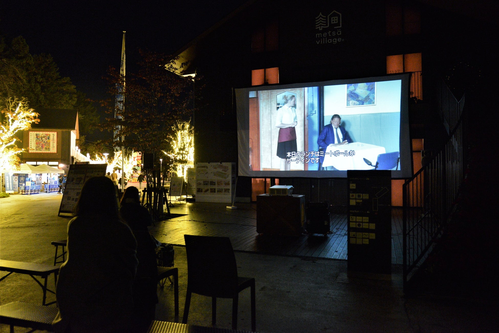 家族用難民テントや「世界難民の日こいのぼり」の展示のほか、チャリティーナイトシネマとしてフィンランド映画「希望のかなた」を上映し、30~40代女性を中心に、湖畔の屋外シアターに鑑賞者が集まりました。