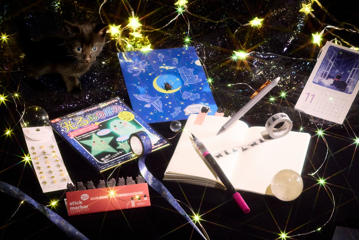 日常で役立つ文房具に加え、遊び心を感じられるアイテムもセレクト。手帳やラッピングなど、さまざまなシーンで星空の輝きを楽しめます。