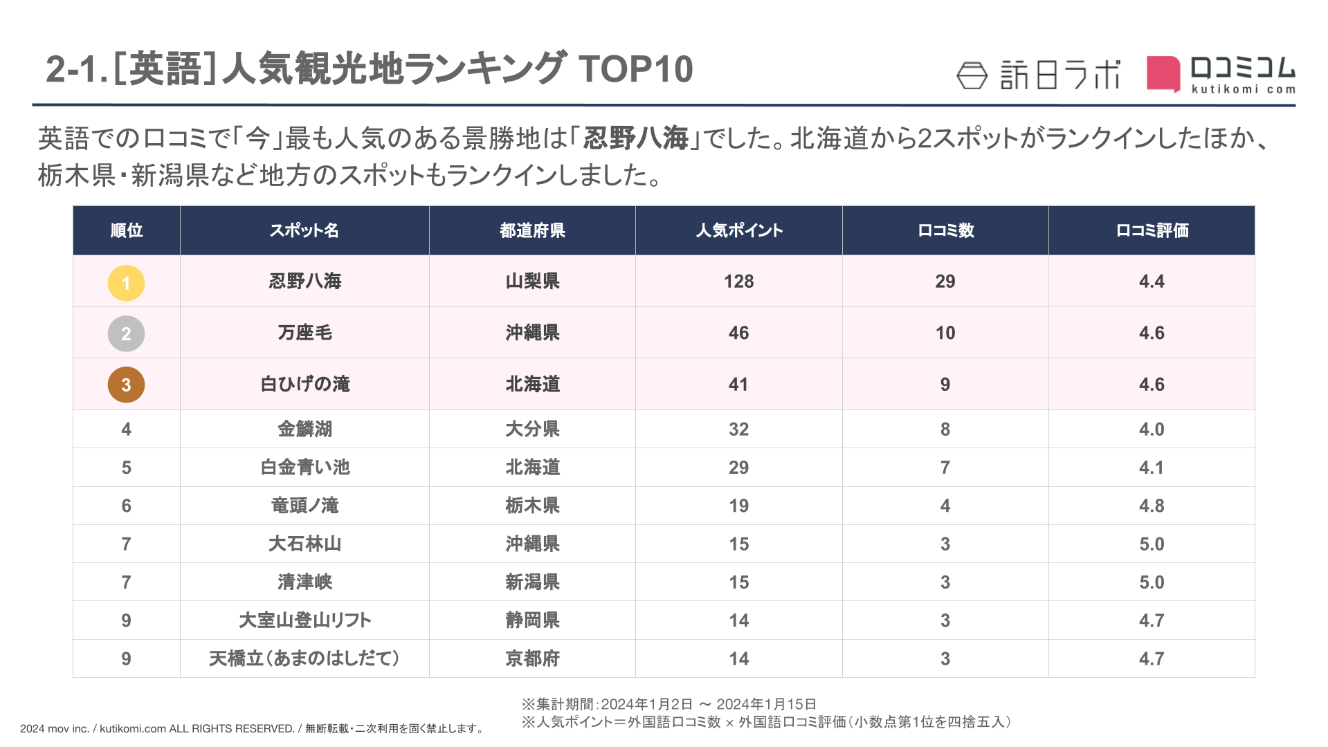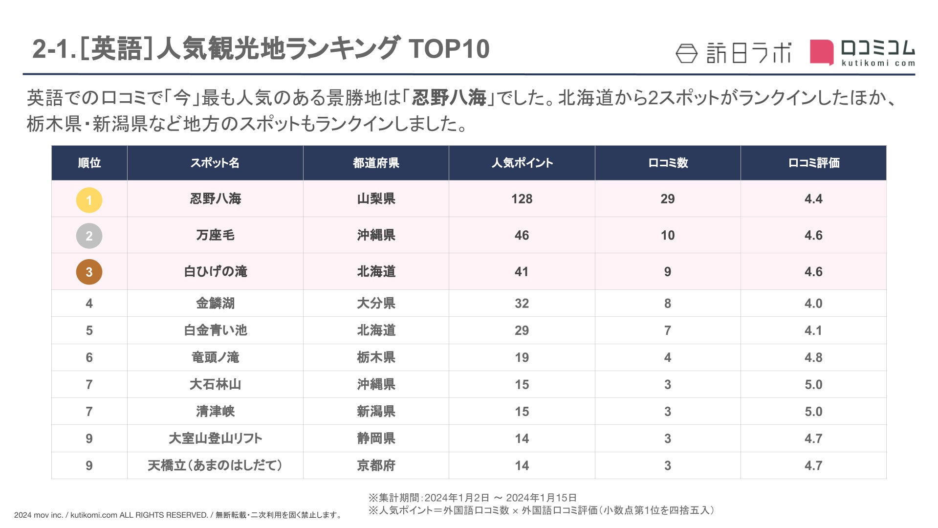 インバウンド対策や口コミマーケティングのヒントに、本レポートをぜひご活用ください!