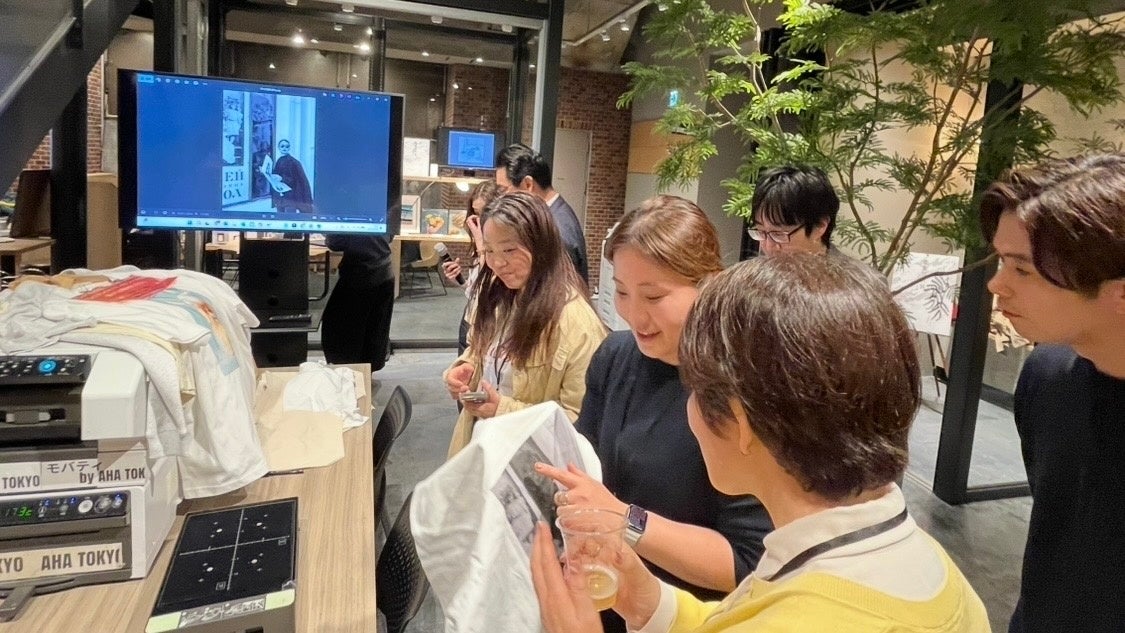 スマートフォンの写真をその場でプリントし、オリジナルTシャツやトートバッグを制作できる体験型コンテンツ「モバティ」の体験型コンテンツも実施。制作工程を見ながら参加者同士の交流が広がりました。