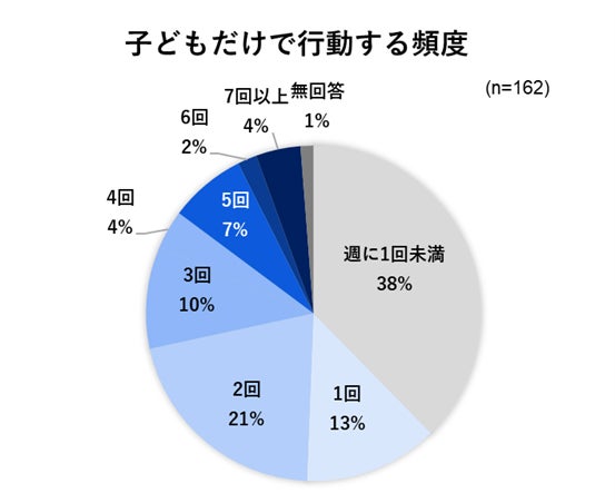 「1回」が13%、「2回」が21%など、合計して60%以上の人が週に1回以上、子どもだけで行動することがあると回答しています。