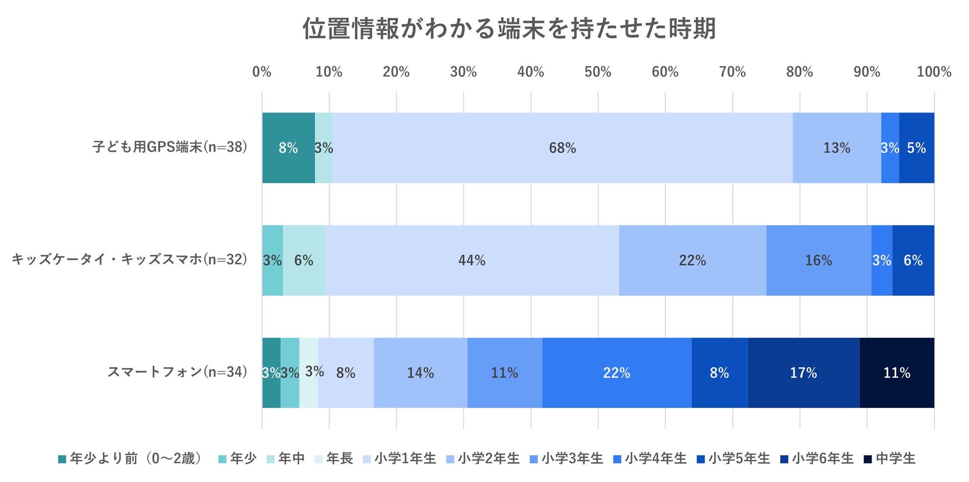 「子ども用GPS端末」は圧倒的に小学1年生の時が多いという結果になりました。