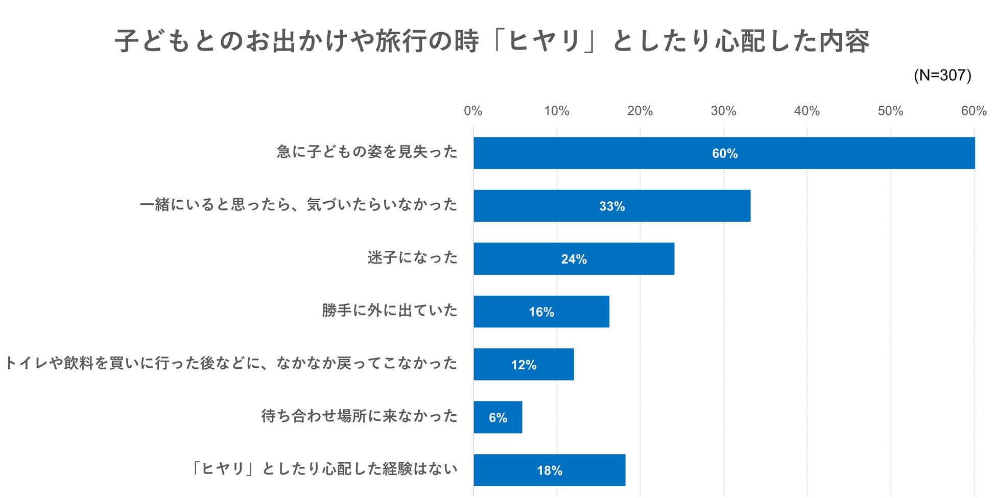 子どもとのお出かけや旅行の時「ヒヤリ」としたり心配したりした経験はあるかについても尋ねました。