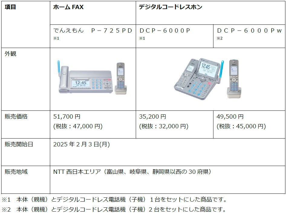 西日本電信電話株式会社(大阪府大阪市、代表取締役社長:北村亮太 以下、NTT西日本)は、従来より提供しているホームファクス及びデジタルコードレスホンに、多様化している特殊詐欺への対策機能や、温度・湿度アラームによる熱中症等の見守り機能を追加した機種である、ホームファクス「でんえもん P-725PD」、デジタルコードレスホン「DCP-6000Pw/P」を2025年2月3日(月)より提供開始いたします。