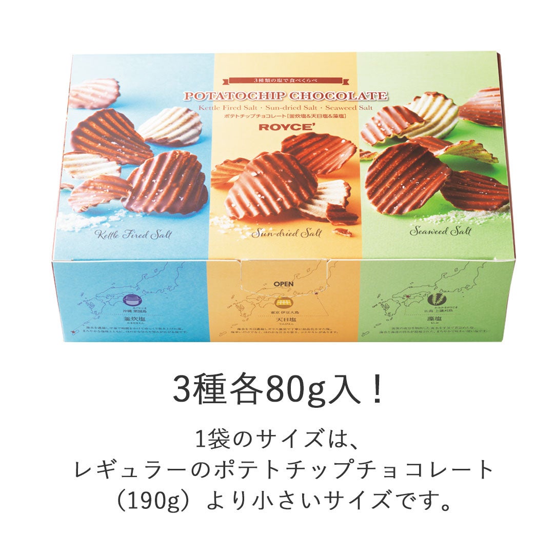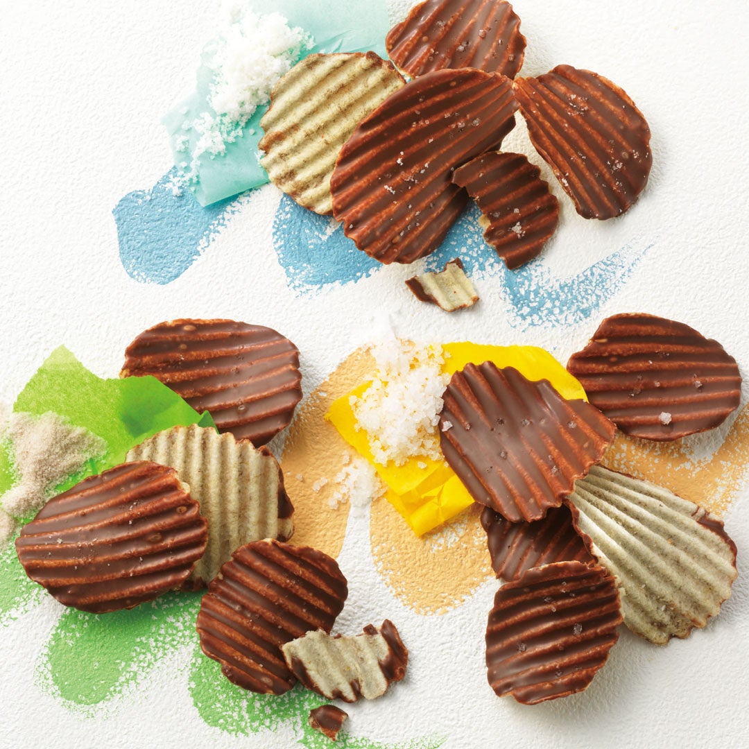 個性あふれる3種の塩のポテトチップチョコレートをお楽しみください。