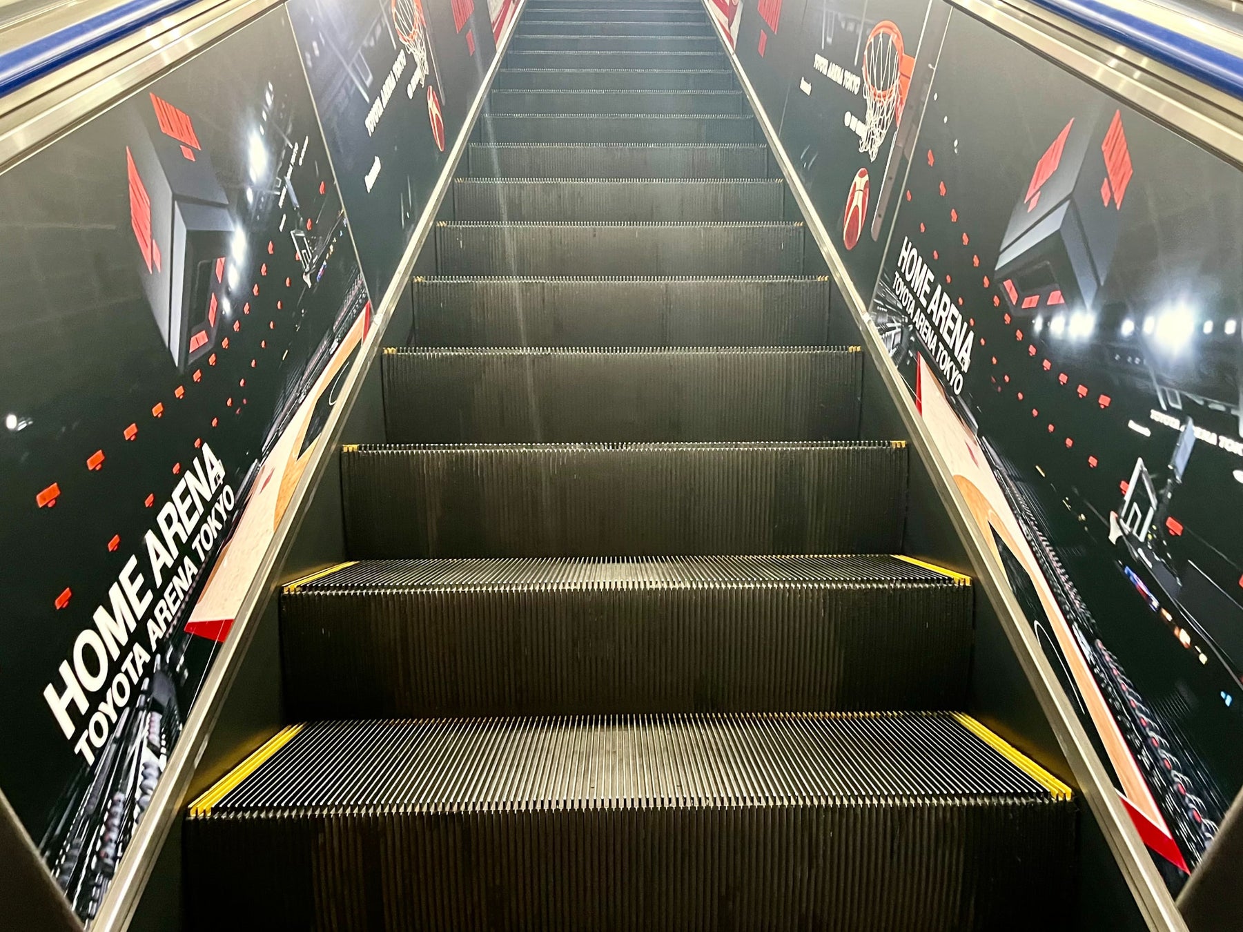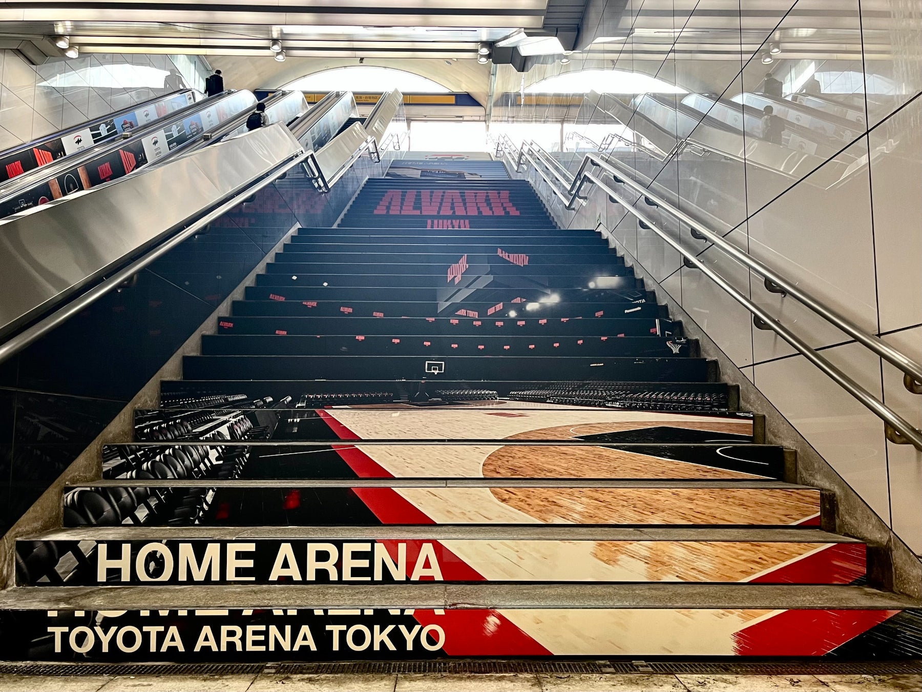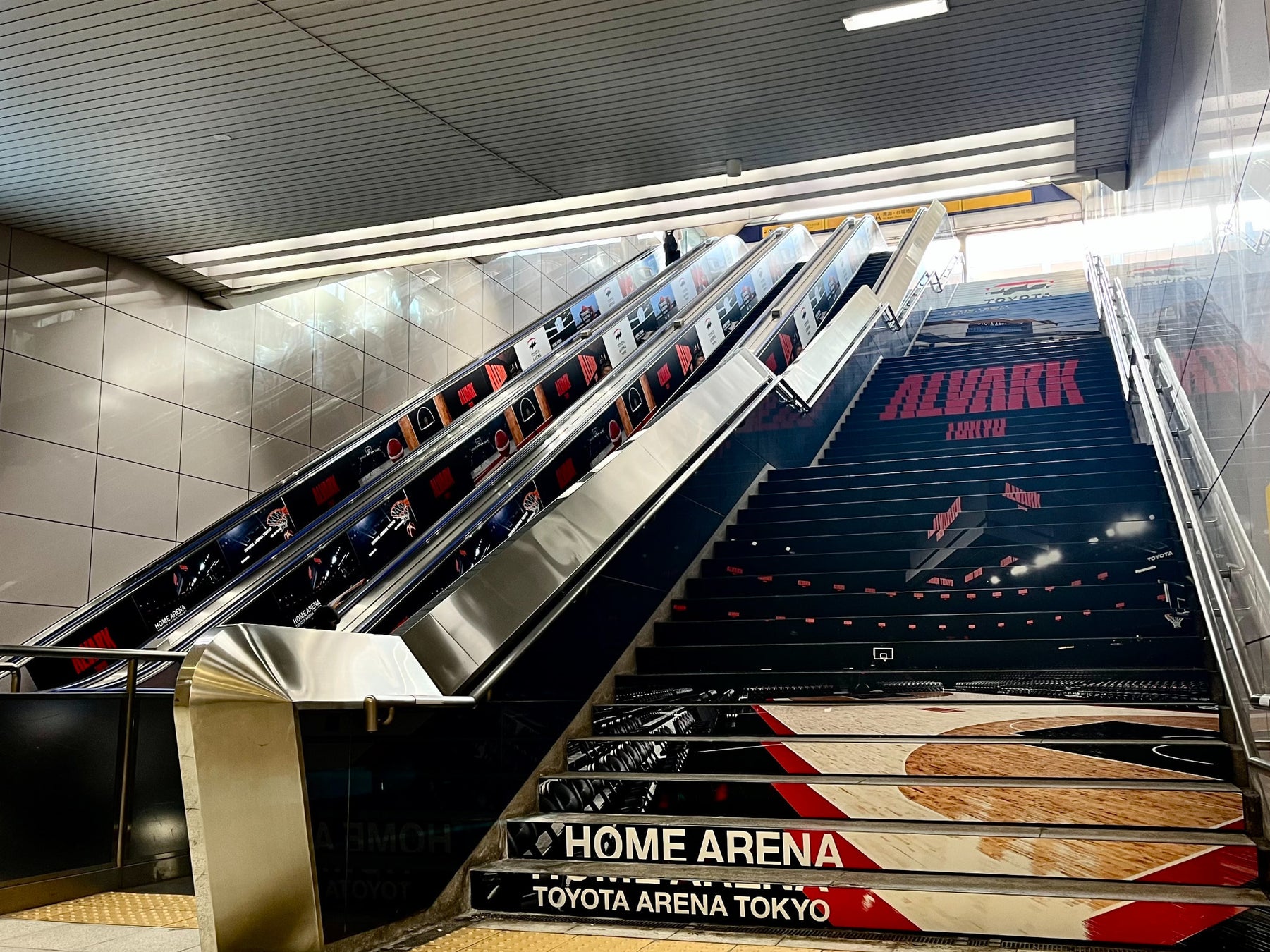 出口Aの階段およびエスカレーターについて、アルバルク東京および新アリーナ「TOYOTA ARENA TOKYO」のロゴ、「TOYOTA ARENA TOKYO」の外観・内観写真やマスコット「ルーク」の写真などで装飾いただきます。「TOYOTA ARENA TOKYO」に向かう駅を出るときから、期待感を高めて、より一日を楽しんでいただくことを目指しています。