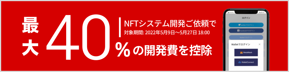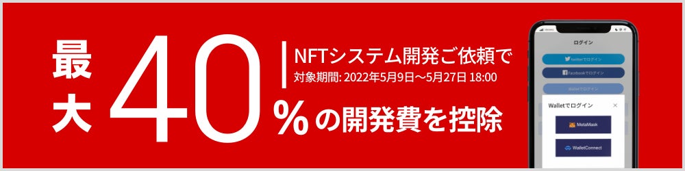 同社では、2022年5月27日まで、NFTシステムの開発費控除キャンペーンを実施しております。