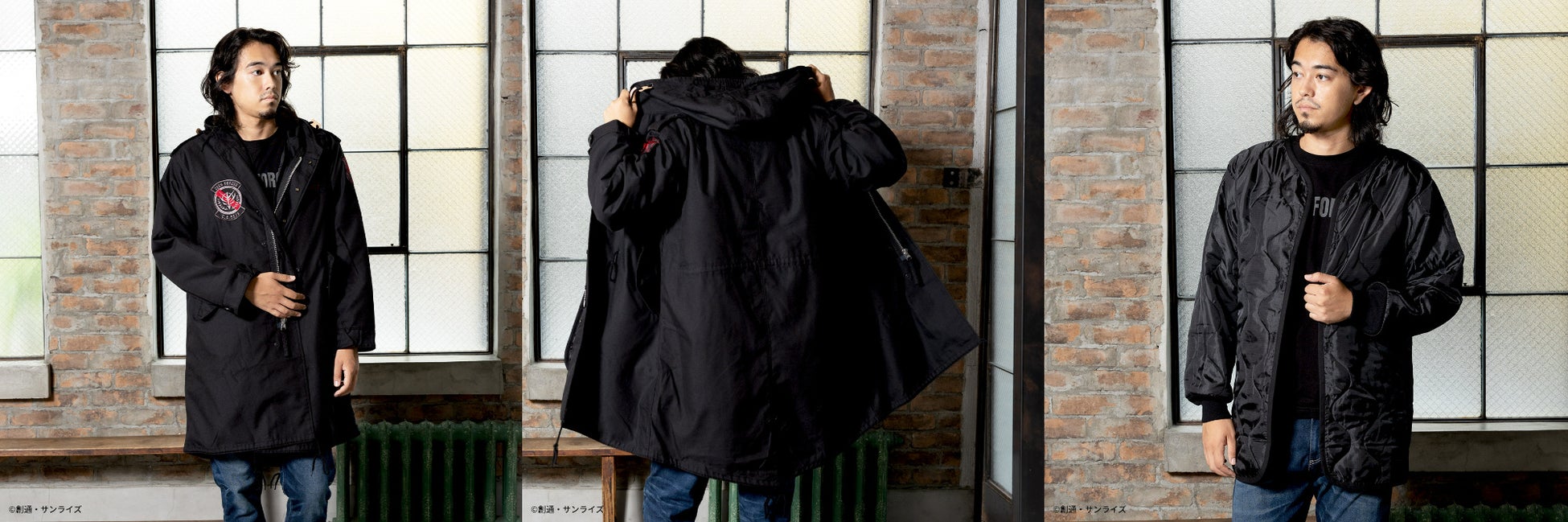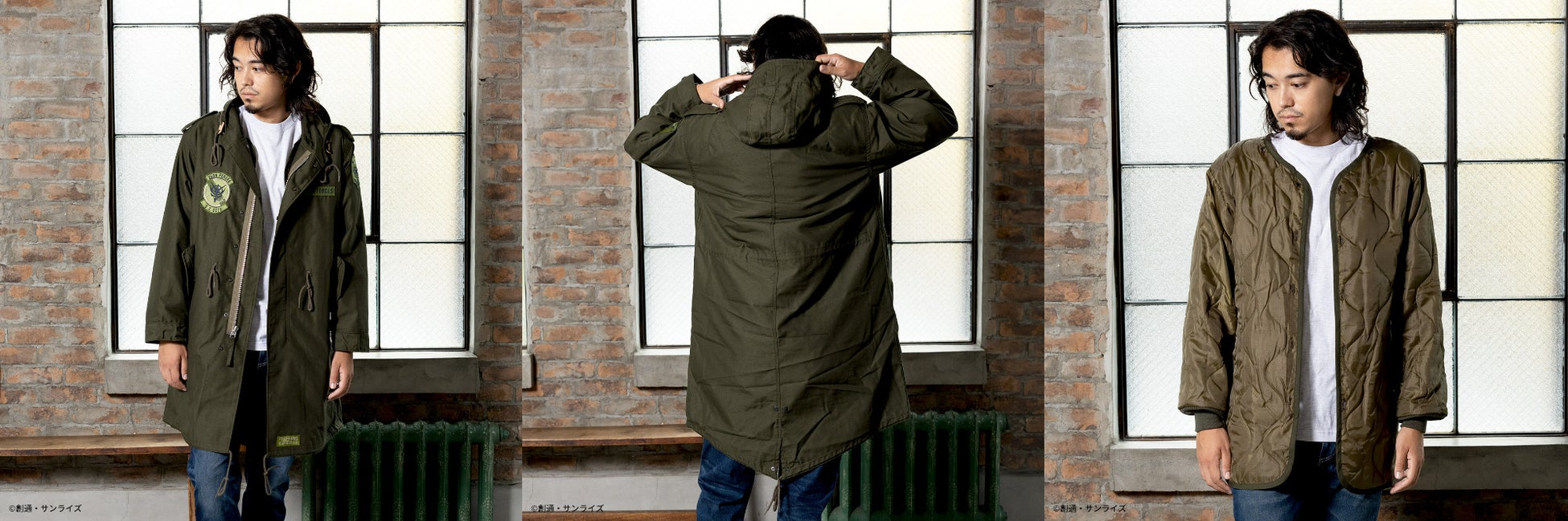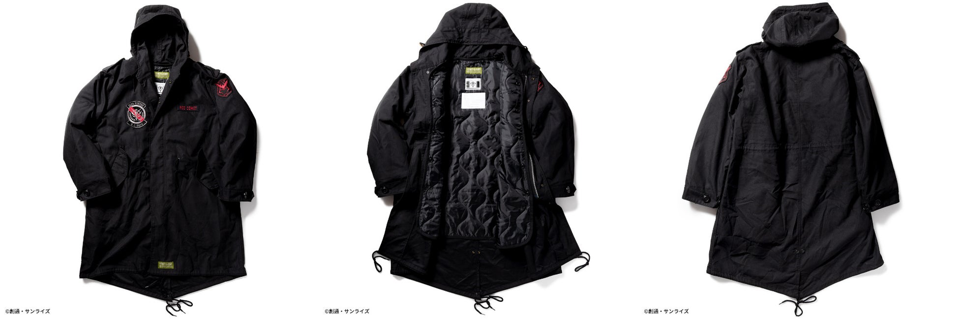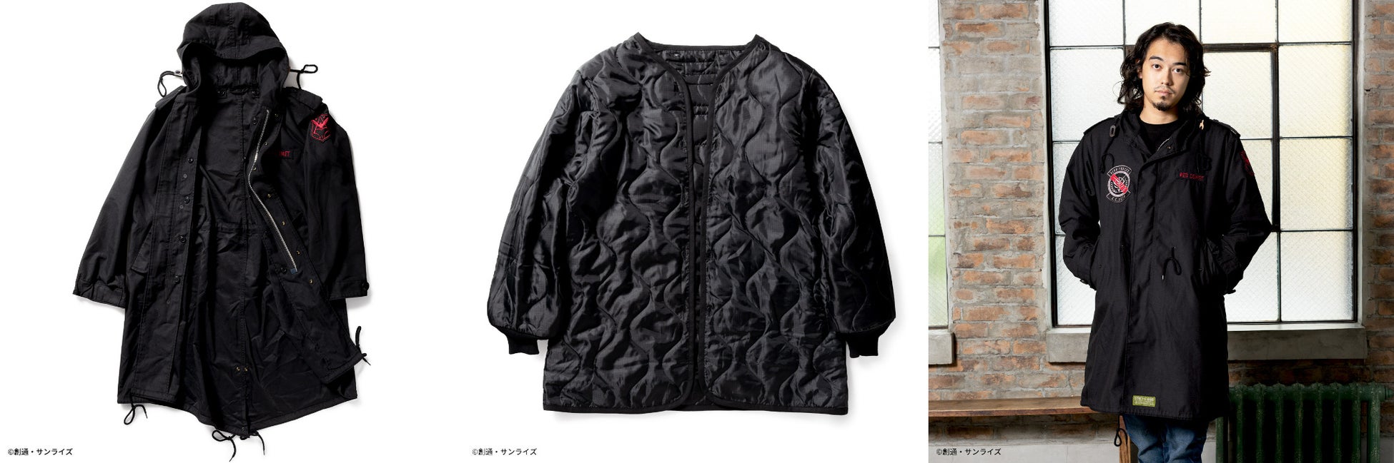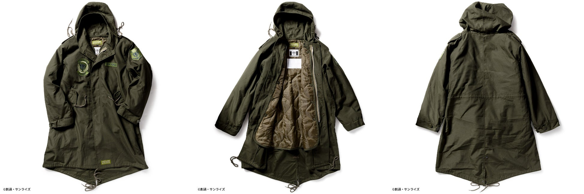 『機動戦士ガンダム 閃光のハサウェイ』からは、1980年代後半に米軍において正式採用された極寒冷気候衣料「ECWCS PARKA」のカスタムモデルとして、機能性に富んだアイテムを2種、『機動戦士ガンダム』からは、M-51 PARKAをラインナップ。正式名称は「PARKA SHELL M-1951」で、一般的にはモッズコート・モッズパーカ・フィッシュテールなどと呼称されており、1951年にアメリカ軍の寒冷地用衣料として採用されたモデルを2種展開致します。