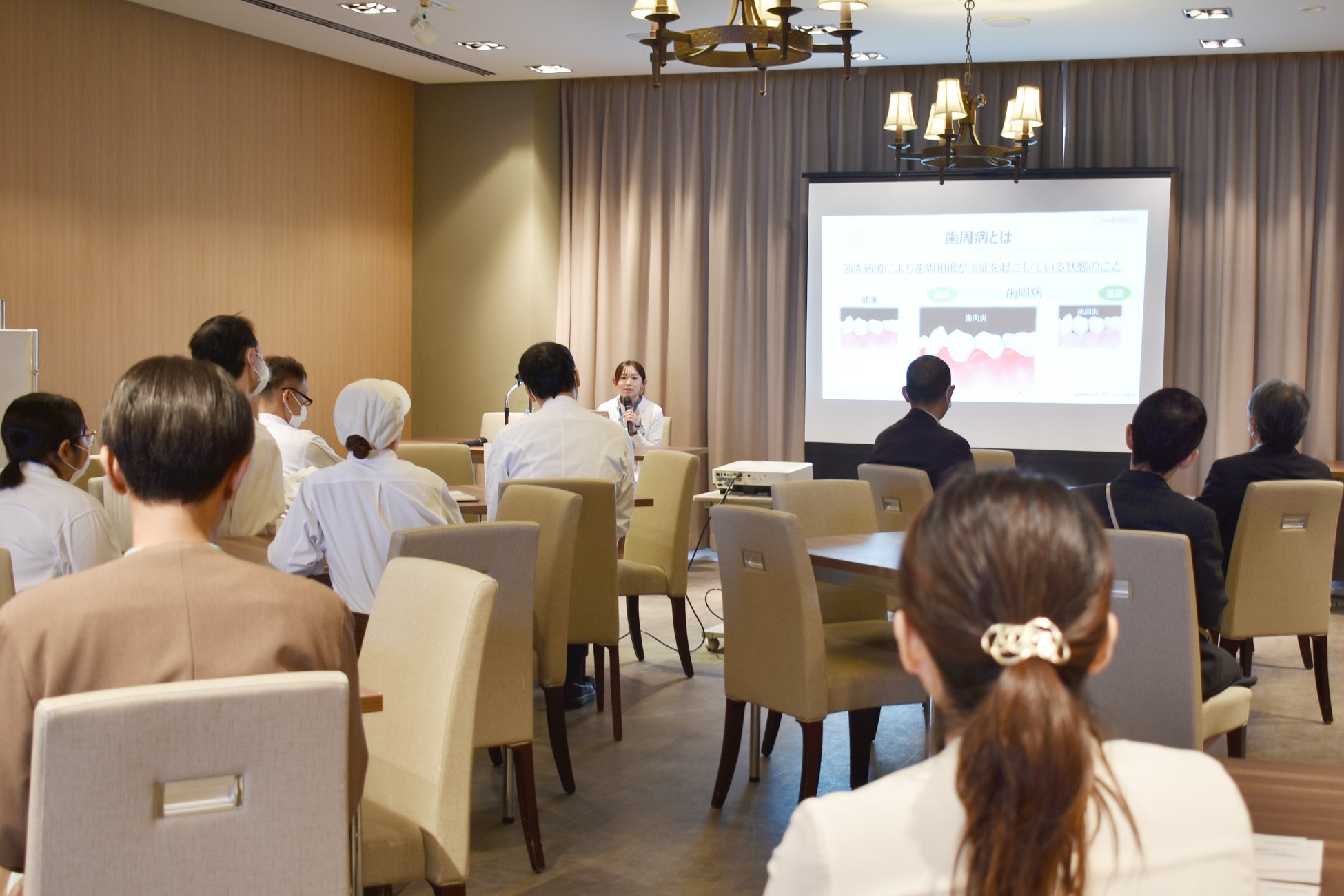 研修では、歯科衛生士に登壇いただき、口腔内の健康と接客において相手に好感を与えるお口のケアについてご講義いただきました。参加したクルーより「接客をするためゲストに良い印象を与えられるよう気にしていこうと思いました。」「みがき方を普段意識できていなかったため、勉強になりました。」という感想があがりました。本イベントには43名のクルーが参加し、オーラルケアの知識や口腔内の健康に対する意識が高まりました。これからも、ゲストの皆さまのご滞在時の健康と笑顔をお届けするクルーのオーラルヘルスケアの実現に努めて参ります。
