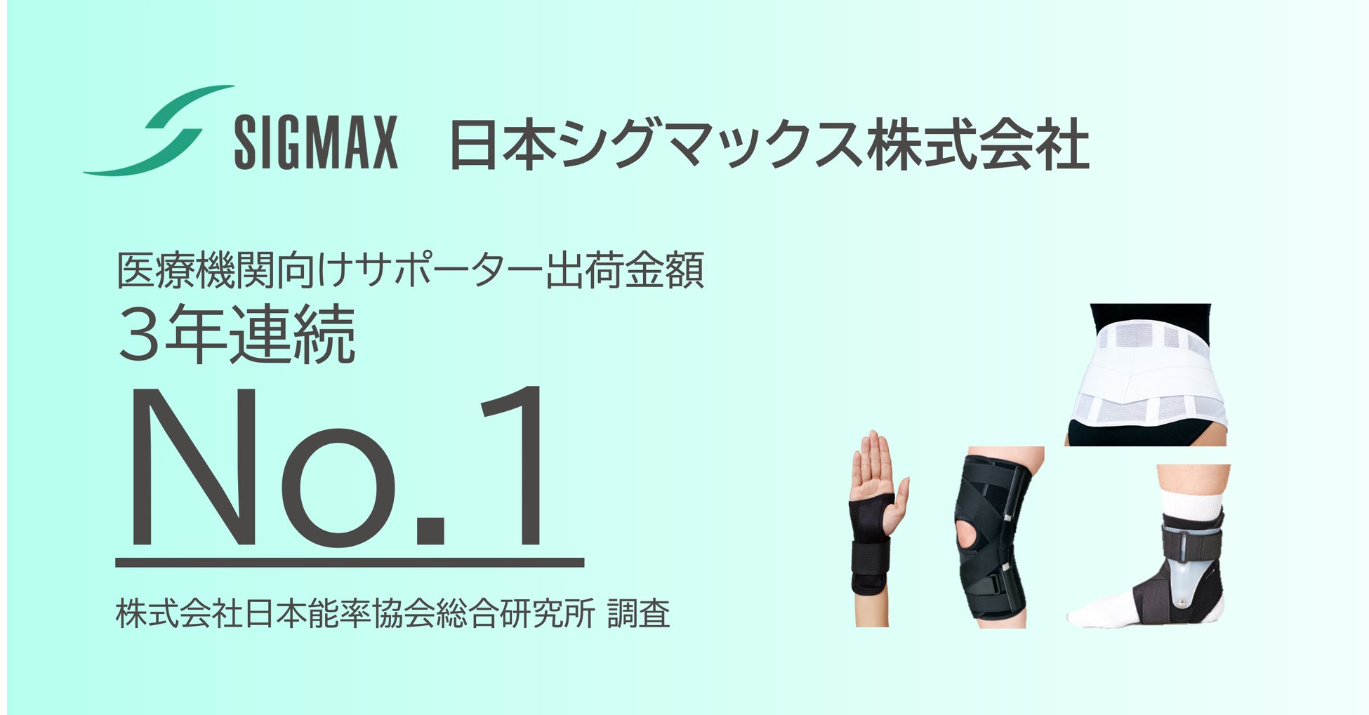 日本シグマックス株式会社(本社:東京都新宿区、代表取締役社長:鈴木洋輔)は、株式会社日本能率協会総合研究所の調査により、日本国内への医療機関向けサポーター出荷金額の調査においてNo.1メーカーであることが明らかとなりました。こちらの結果は3年連続(2021~2023年度)となります。