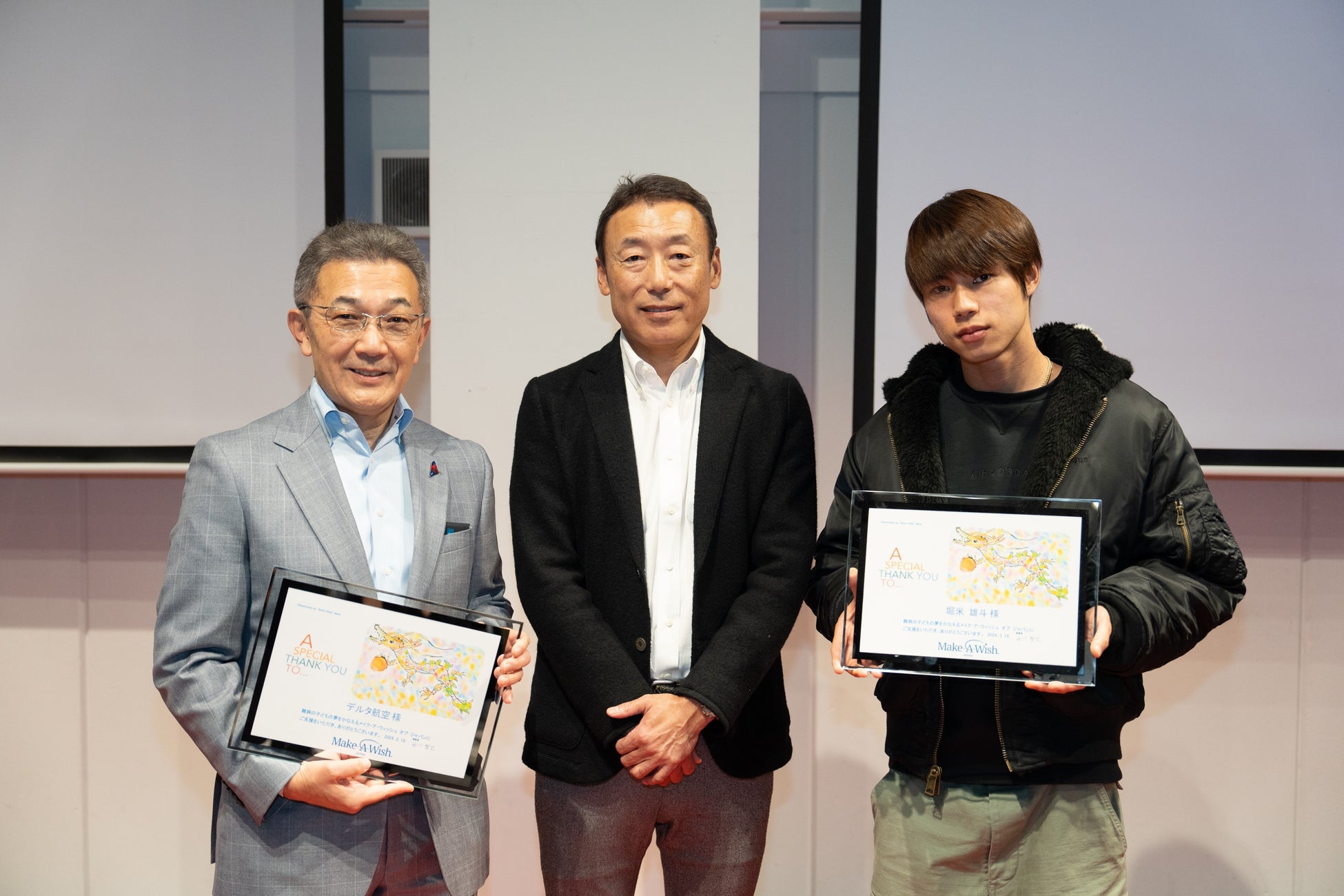 同団体の西川智巳理事長は、「デルタ航空には10年以上も前から私どもの団体を支援していただき、多くの難病の子どもたちのアメリカに行きたいという夢や、パイロットやフライトアテンダントになりたいという夢をかなえるためにご協力いただきました。今回堀米選手から多大な寄付をいただき、心より感謝しております。いただいたマイルは、難病の子どもたちとその家族の渡航のために使わせていただきます。」と述べ、堀米選手とデルタ航空に感謝状を贈呈しました。