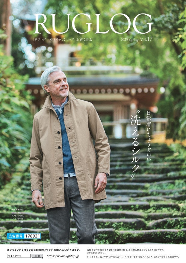 “洗えるシルク”に注目。上質で快適な日常ウェアのメンズカタログ〈RUGLOG〉春号が、ライトアップショッピングクラブより3月13日(月)に発刊されます。