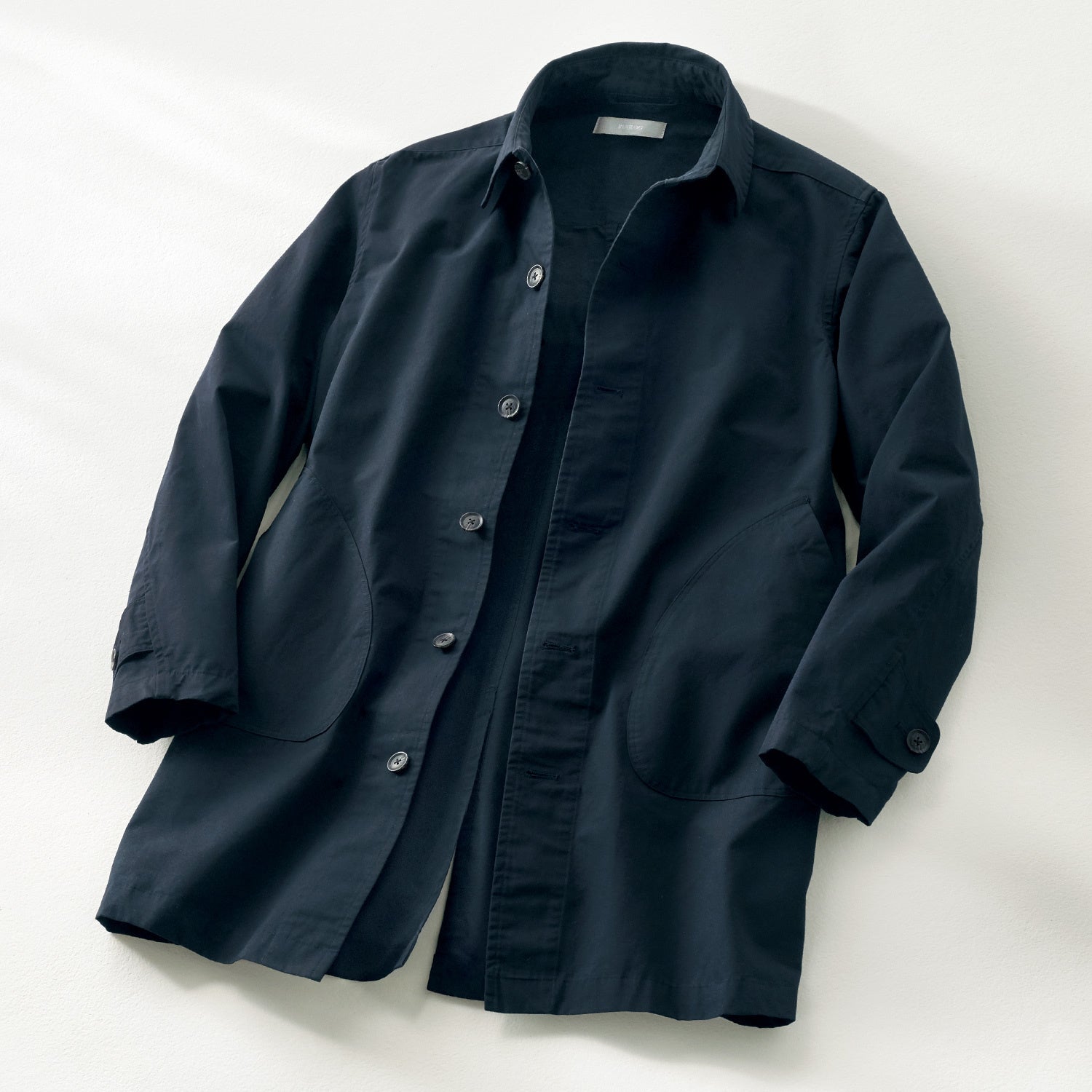 - まるでシャツのように軽やかな、洗えるシルク混の撥水コート