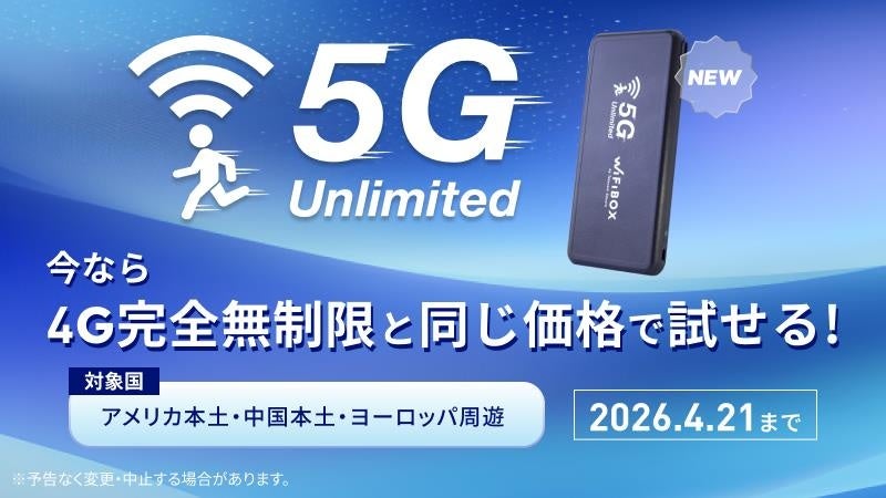 モバイル通信のクロスボーダー・ソリューションを世界規模で提供する株式会社テレコムスクエア(本社:東京都千代田区、代表取締役:吉竹 雄次、以下、「当社」)は2026年2月24日(火)より、セルフWi-Fiレンタル「WiFiBOX」において、5G完全無制限プラン(以下、本プラン)を提供開始いたします。
