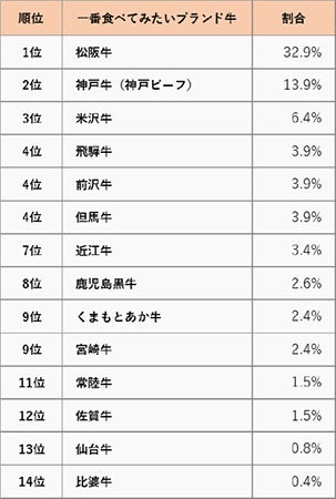 それでは、数あるブランド牛のうち、一番食べてみたいブランド牛はどれなのか。その結果をご紹介します。