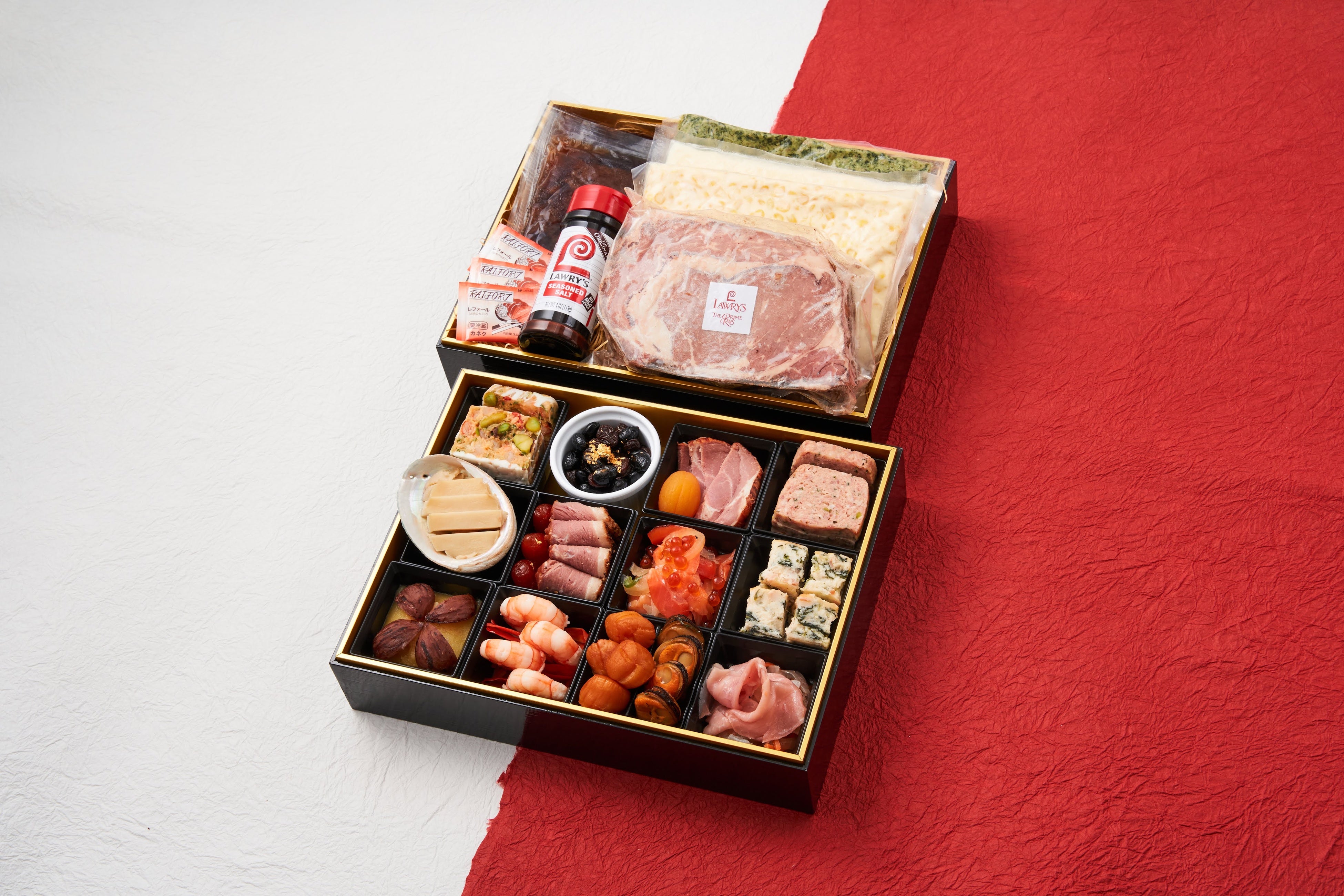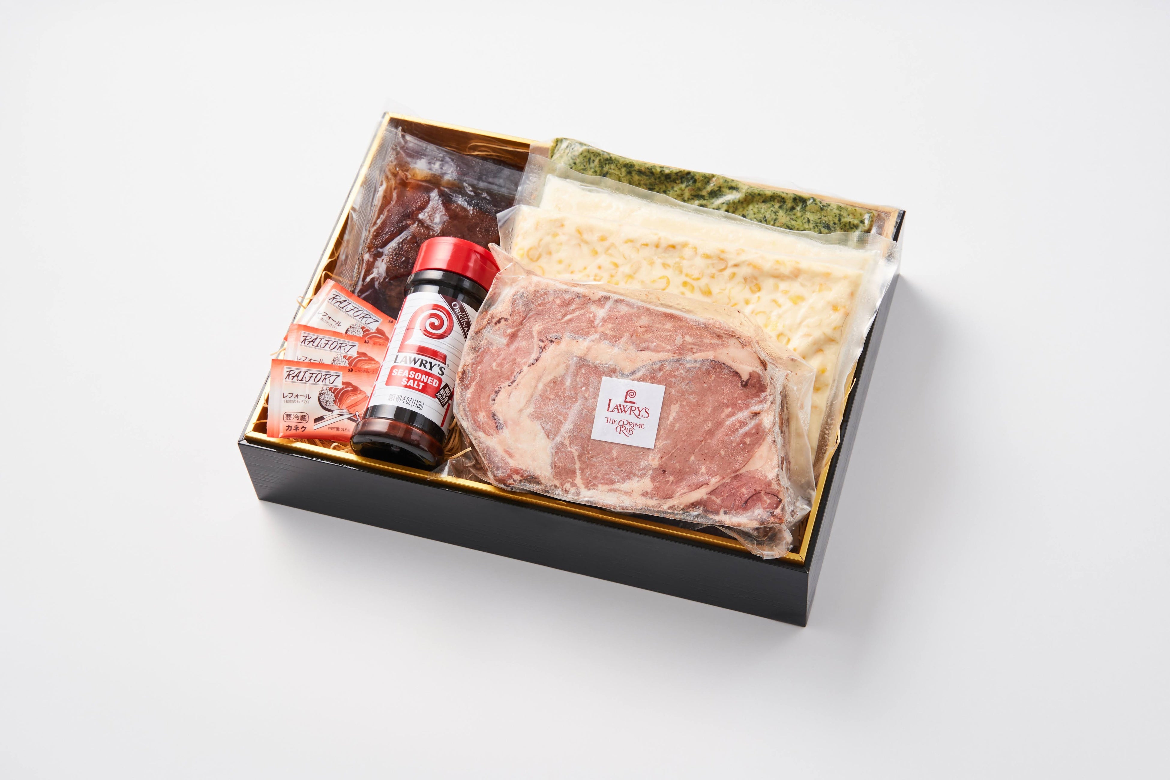 | Lawry's New Year OSECHI ロウリーズのプライムリブおせち 2段重 プライムリブとアカンパニメンツ3種 + オードブル17品 32,000円(税込・送料無料) 3段重 プライムリブとアカンパニメンツ3種 + オードブル20品 + デザート7品 38,000円(税込・送料無料) 購入サイト https://lawrys.jp/products/osechi 販売期間 2022年8月22日(月)~12月25日(日) お届け期間 12月28日(水)~30日(金) 早割特典 11月中は1,000円OFFでお買い求めいただけます サイズ(外寸) 2段:縦215×横282×高さ129 、 3段:縦215×横282×高さ183 ※単位 mm ※2段・3段ともに3~4名様相当となります。 ※数量限定により完売した時点で販売終了とさせていただきます。 ※ご注文内容の変更・キャンセルは2022年12月11日(日)まで承ります。 ※お届け地域によって12月28日のお届けができない場合があります。 ※店頭販売は承っておりません。 ※ヤマトクール便でお届けします。 |