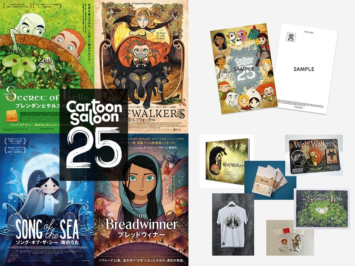 また、本上映を記念して豪華な劇場物販ラインナップも発表に。『ブレンダンとケルズの秘密』『ウルフウォーカー』のアートブックをはじめ、ケルト3部作(『ブレンダンとケルズの秘密』『ソング・オブ・ザ・シー 海のうた』『ウルフウォーカー』)のスケッチブック、ポストカード、パンフレット、ARピンバッジなど多彩なアイテムが目白押し!