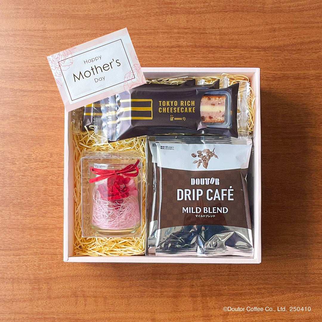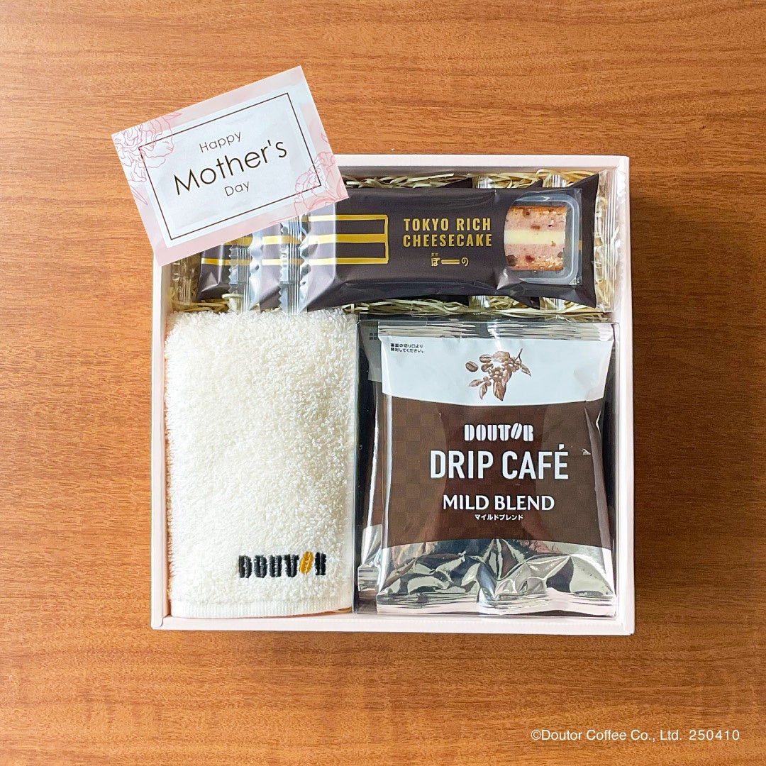 株式会社ドトールコーヒー(本社:東京都渋谷区/代表取締役社長:星野 正則)は、2025年4月11日より、公式通販サイト「ドトール オンラインショップ」にて、ドリップカフェとスイーツ、ドトールコーヒーオリジナルの「プリザーブドフラワー」または「ハンドタオル」が入った数量限定「母の日ギフトセット」の予約販売を開始いたします。