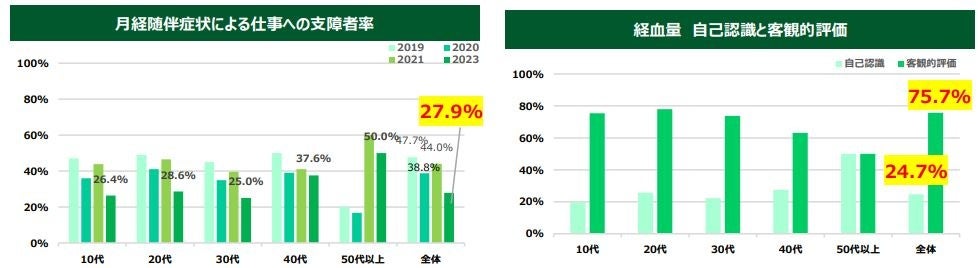■過多月経における労働損失は前回比16.1%改善。一方で、若年層を中心に過多月経における自己認知の低さが浮き彫りに。