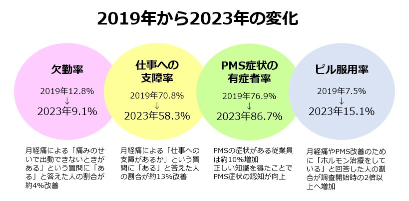 過去4年間の継続的なアクションにより、月経における労働損失や仕事への支障率・欠勤率が改善