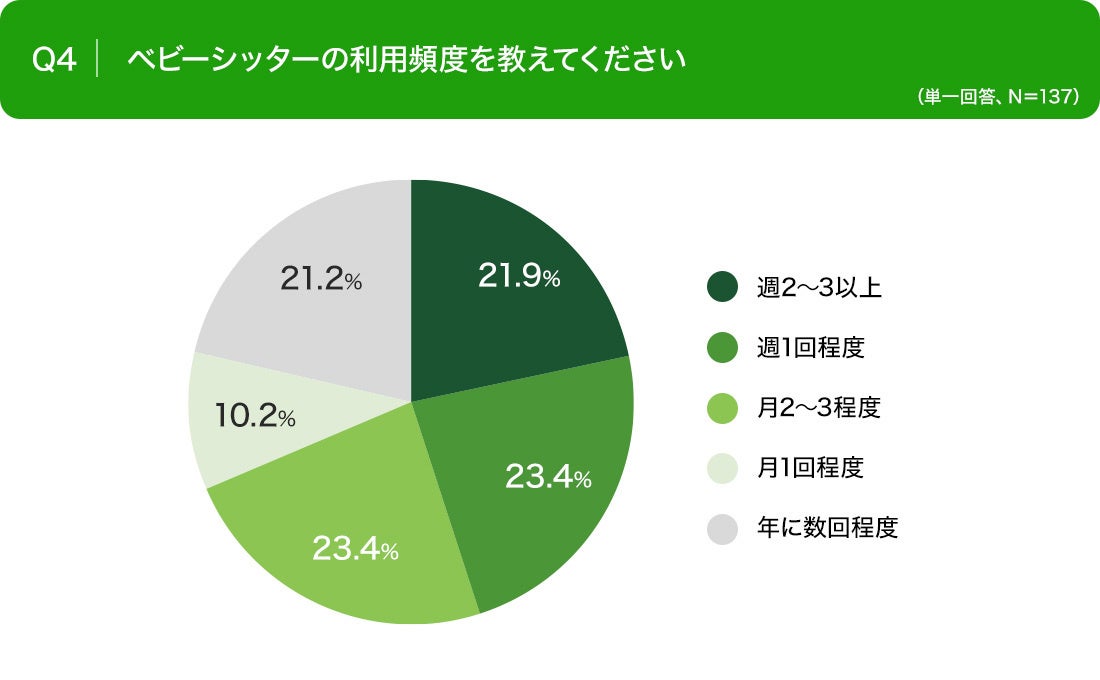 ベビーシッターの利用経験は約2割、そのうち週1回以上の利用は45.3%