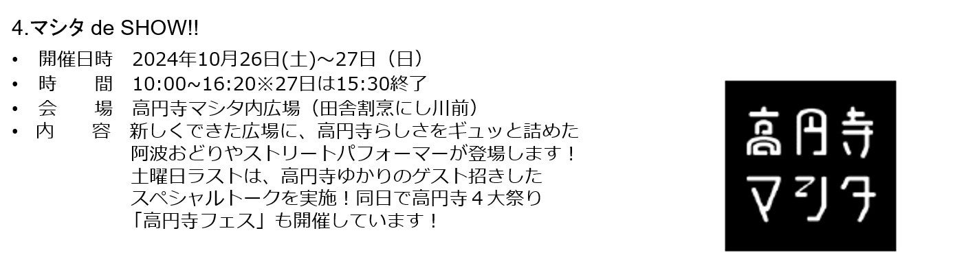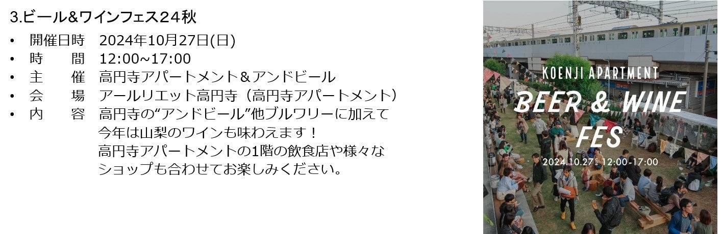2024.10.26(土)~ 10.27(日)高円寺駅~阿佐ケ谷駅間の高架下で様々な秋のイベントを行います!