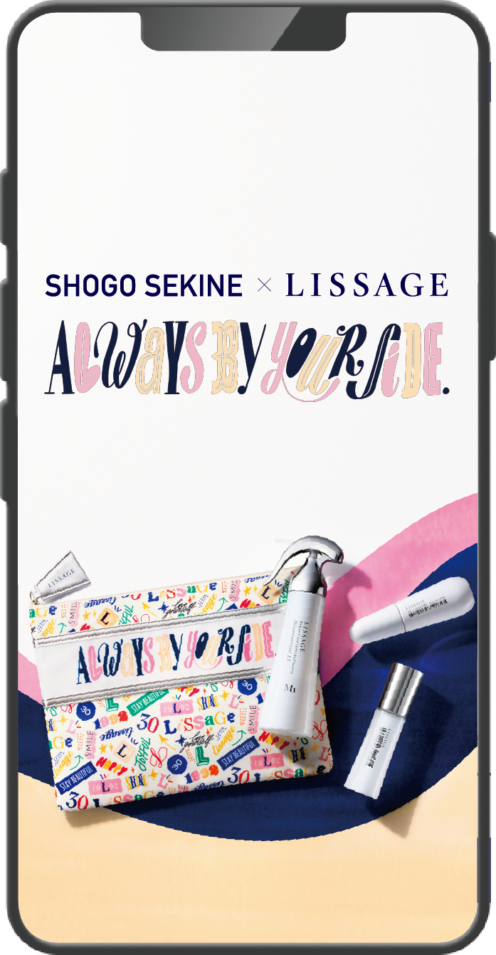 これからもお客様に寄り添い、お客様一人ひとりの肌のいちばんの理解者でありたい。そんな想いを込めて、「ALWAYS BY YOUR SIDE.」をテーマに掲げ、人気イラストレーターSHOGO SEKINE氏とコラボレーション。数量限定のコラボアイテムやスペシャルコンテンツを順次展開してまいります。第1弾では、2022年9月20日~12月31日の期間中に対象商品ご購入者へSHOGO SEKINE×LISSAGE 限定デザイン オリジナル“クラッチポーチ”をプレゼントいたします。30周年を迎えた『LISSAGE(リサージ)』に、ぜひご期待ください。