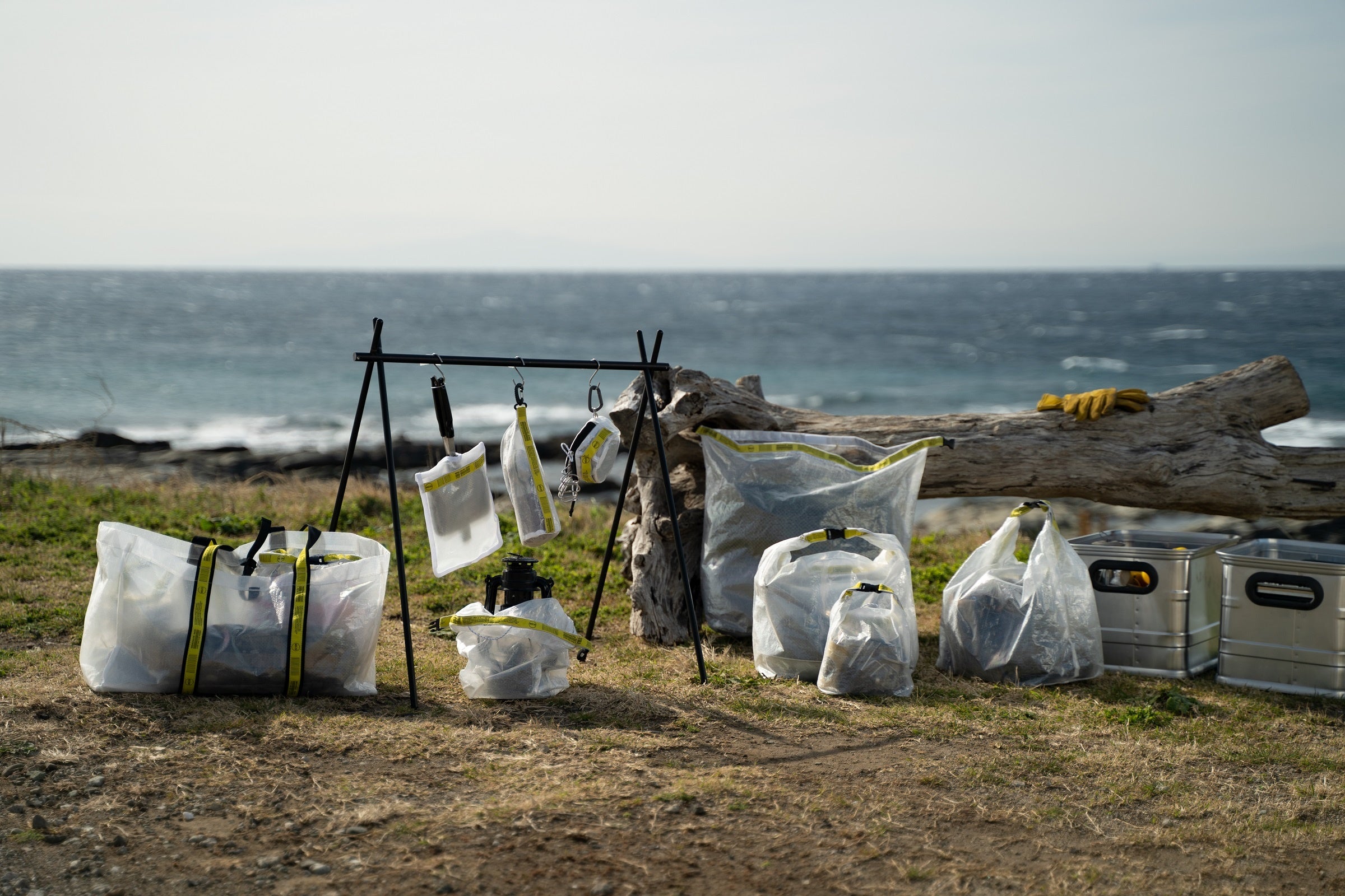 堅牢なPE(ポリエチレン)生地を使用したキャンプアイテムパッキングシリーズ。